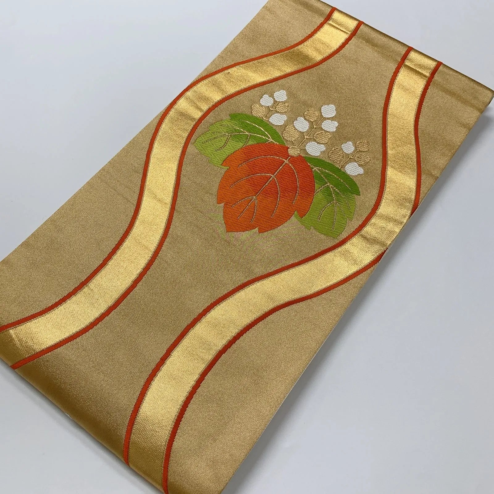 6595# Japanese Vintage Fukuro Obi Belt Kimono Fabric Silk Traditional Gold
