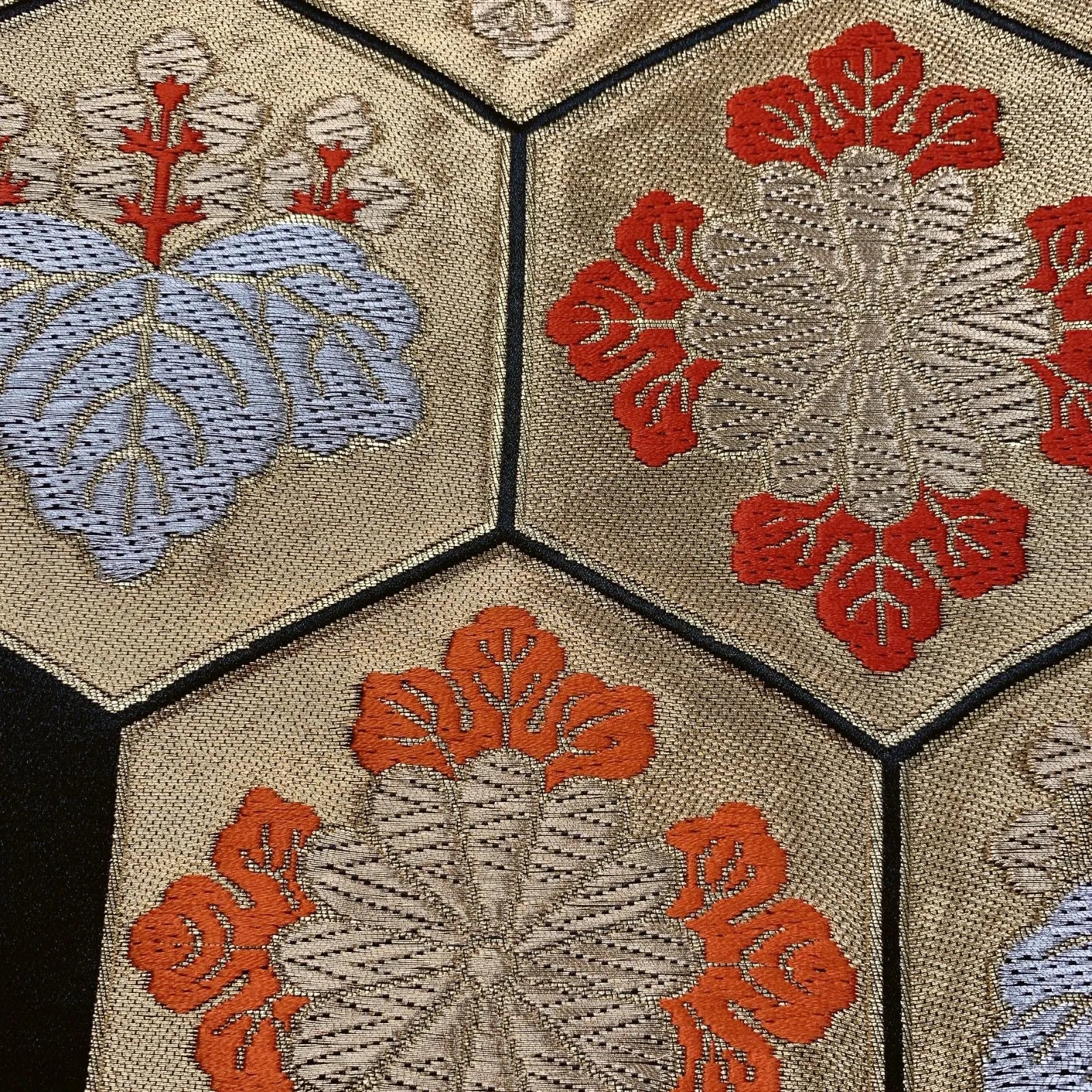 6615# Japanese Vintage Fukuro Obi Belt Kimono Fabric Silk Traditional Black