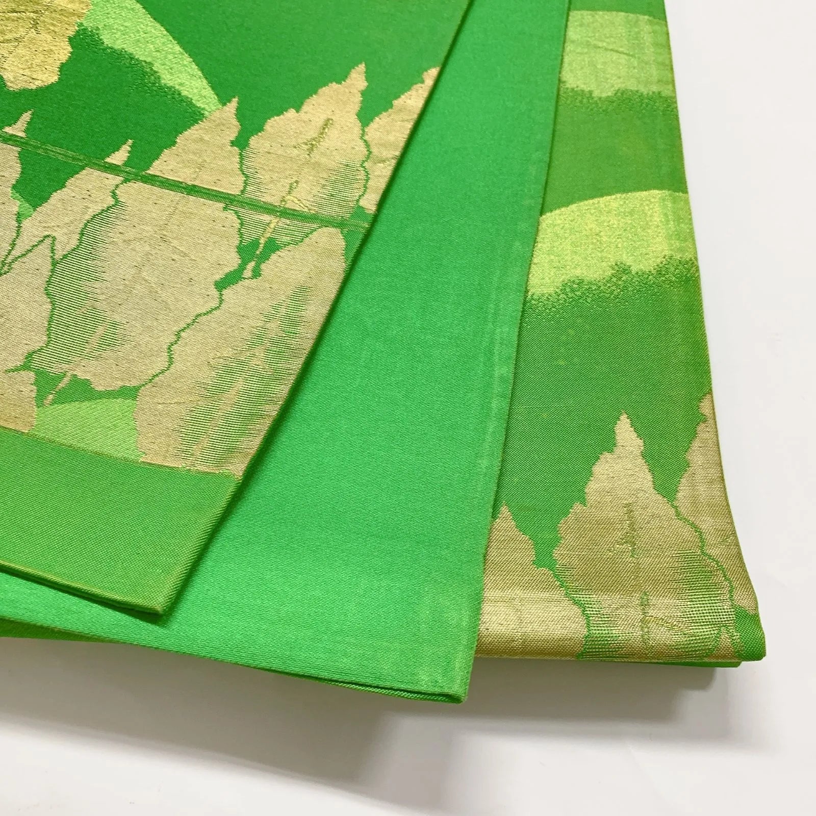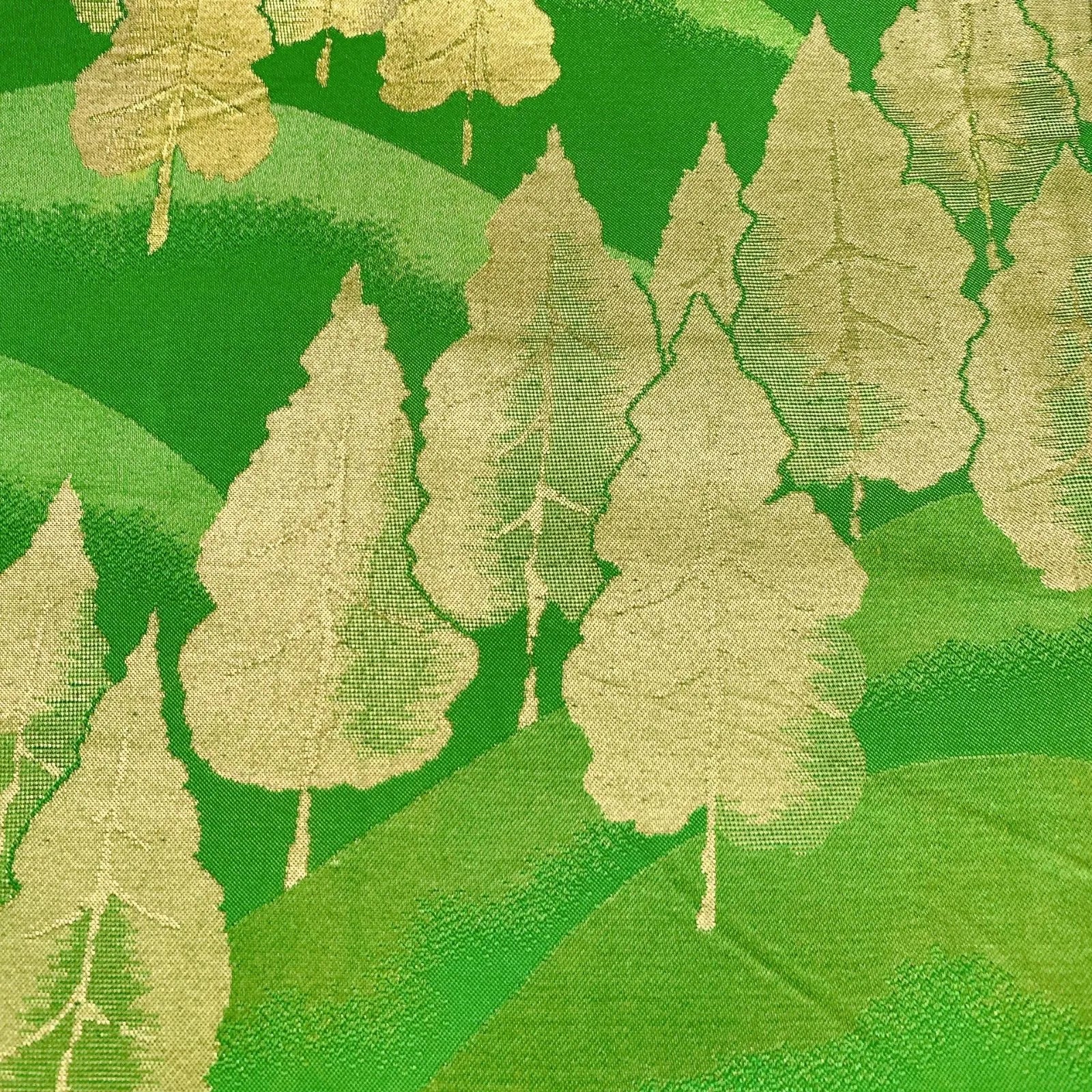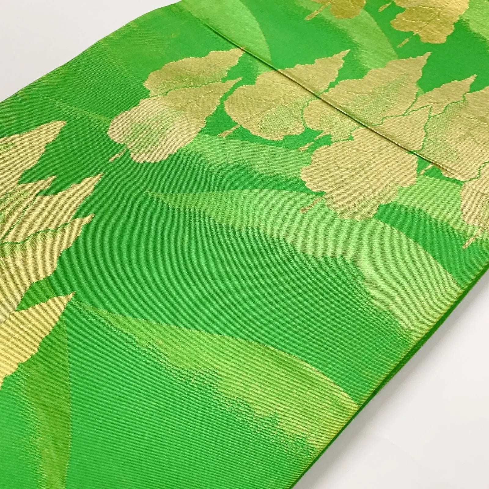 6633# Japanese Vintage Fukuro Obi Belt Kimono Fabric Silk Traditional Green