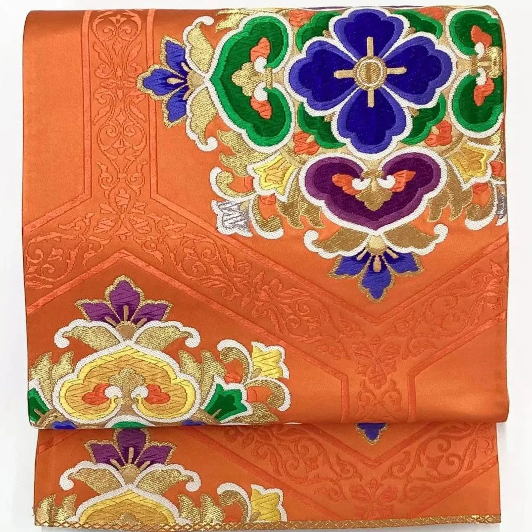 6643# Japanese Vintage Fukuro Obi Belt Kimono Fabric Silk Traditional Embroidery