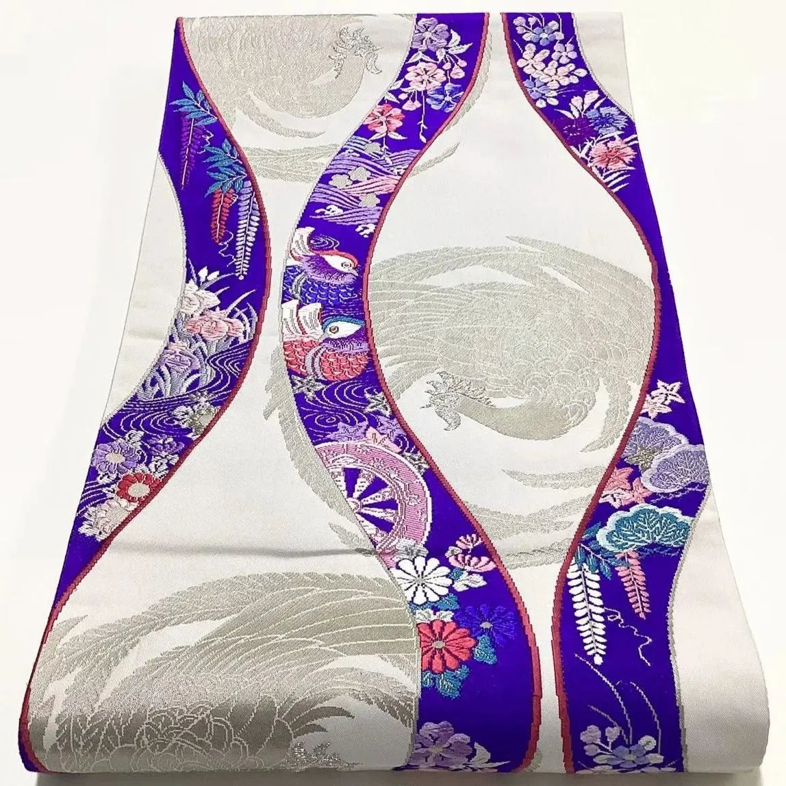 6659# Japanese Vintage Fukuro Obi Belt Kimono Fabric Silk Traditional Embroidery