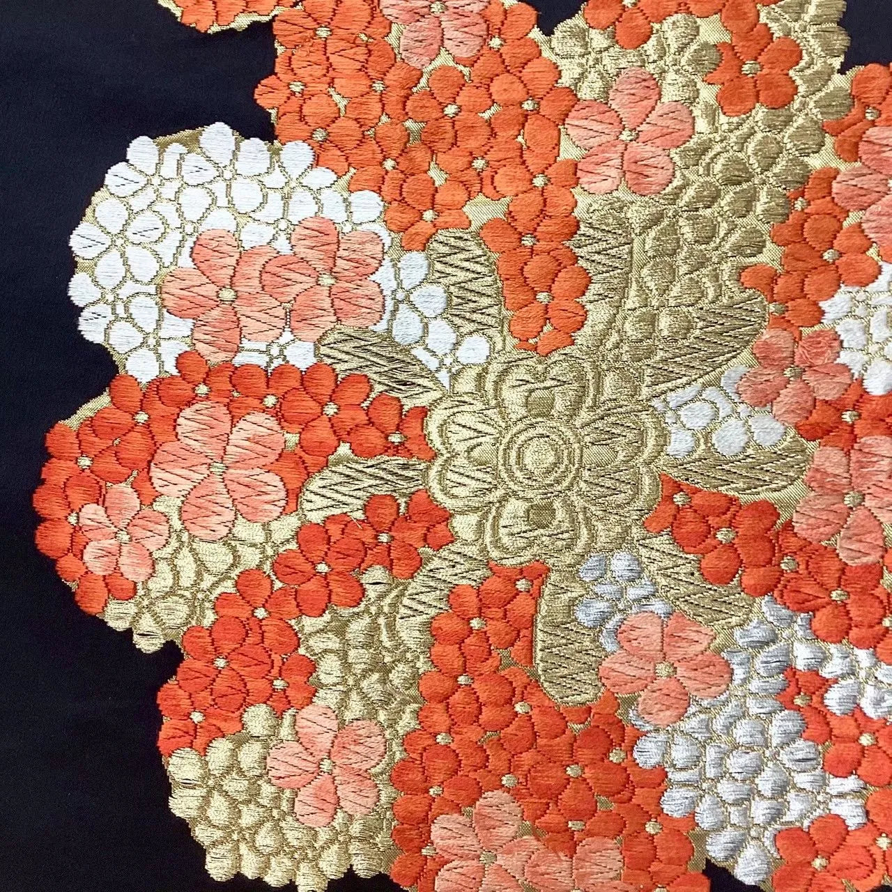 6670# Japanese Vintage Fukuro Obi Belt Kimono Fabric Silk Traditional Black