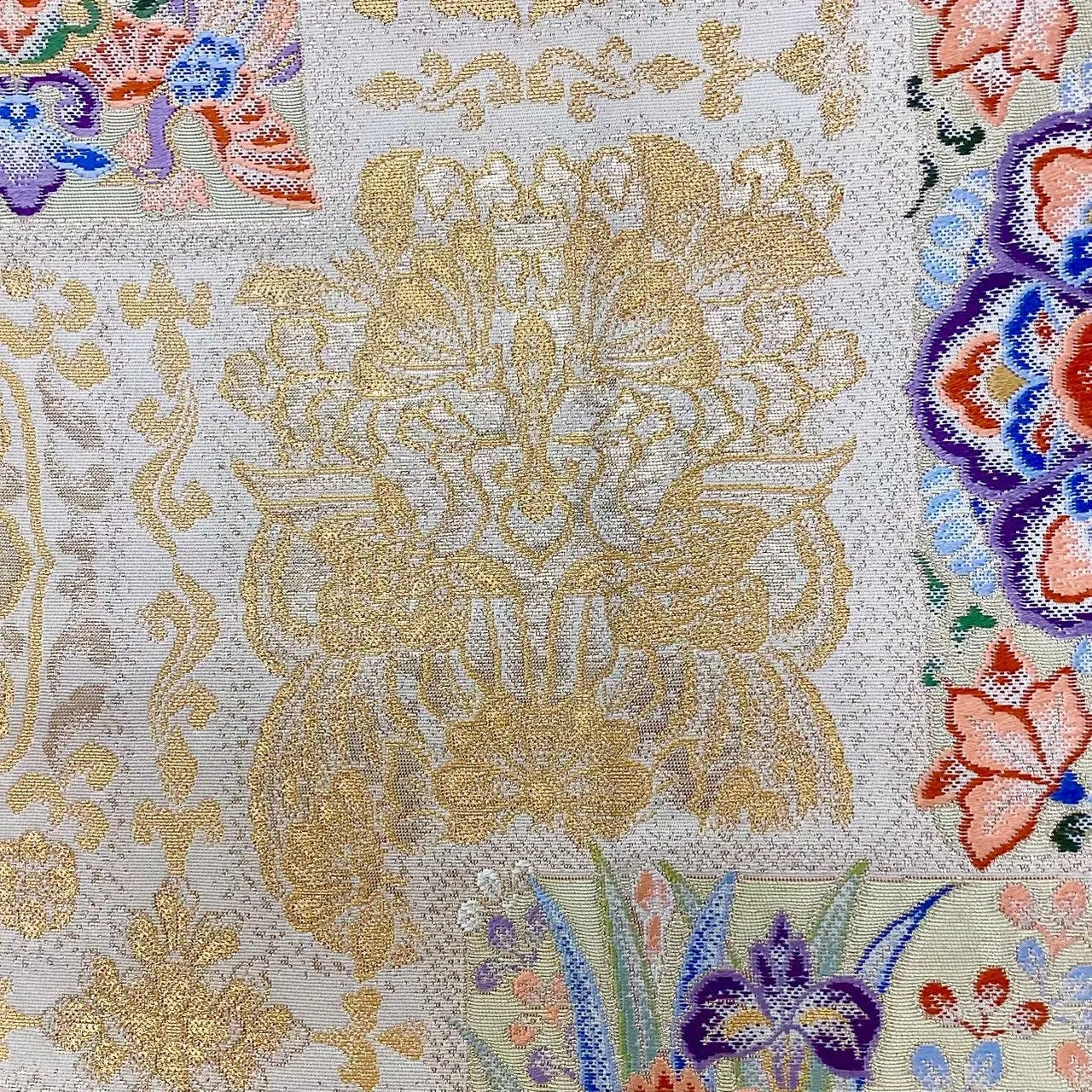 6699# Japanese Vintage Fukuro Obi Belt Kimono Fabric Silk Traditional Gold