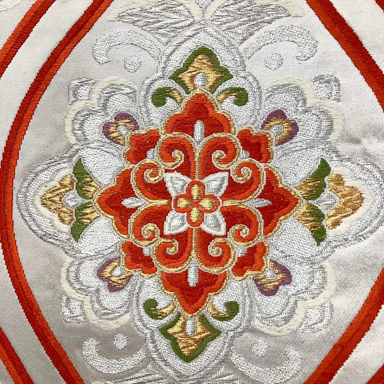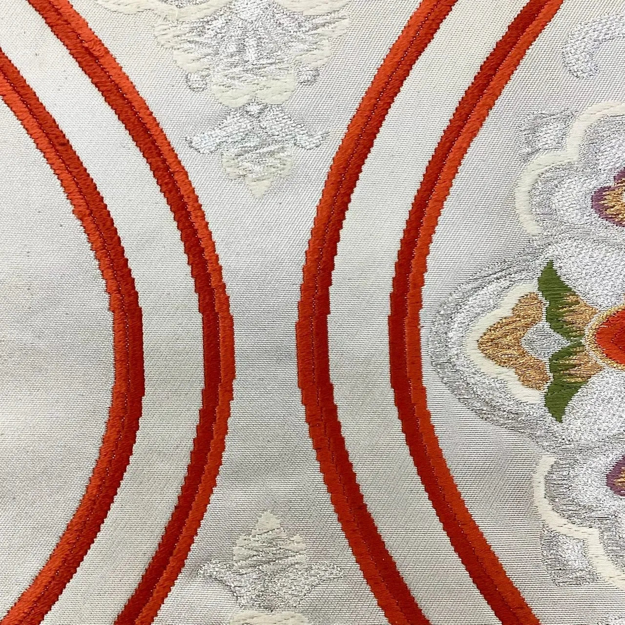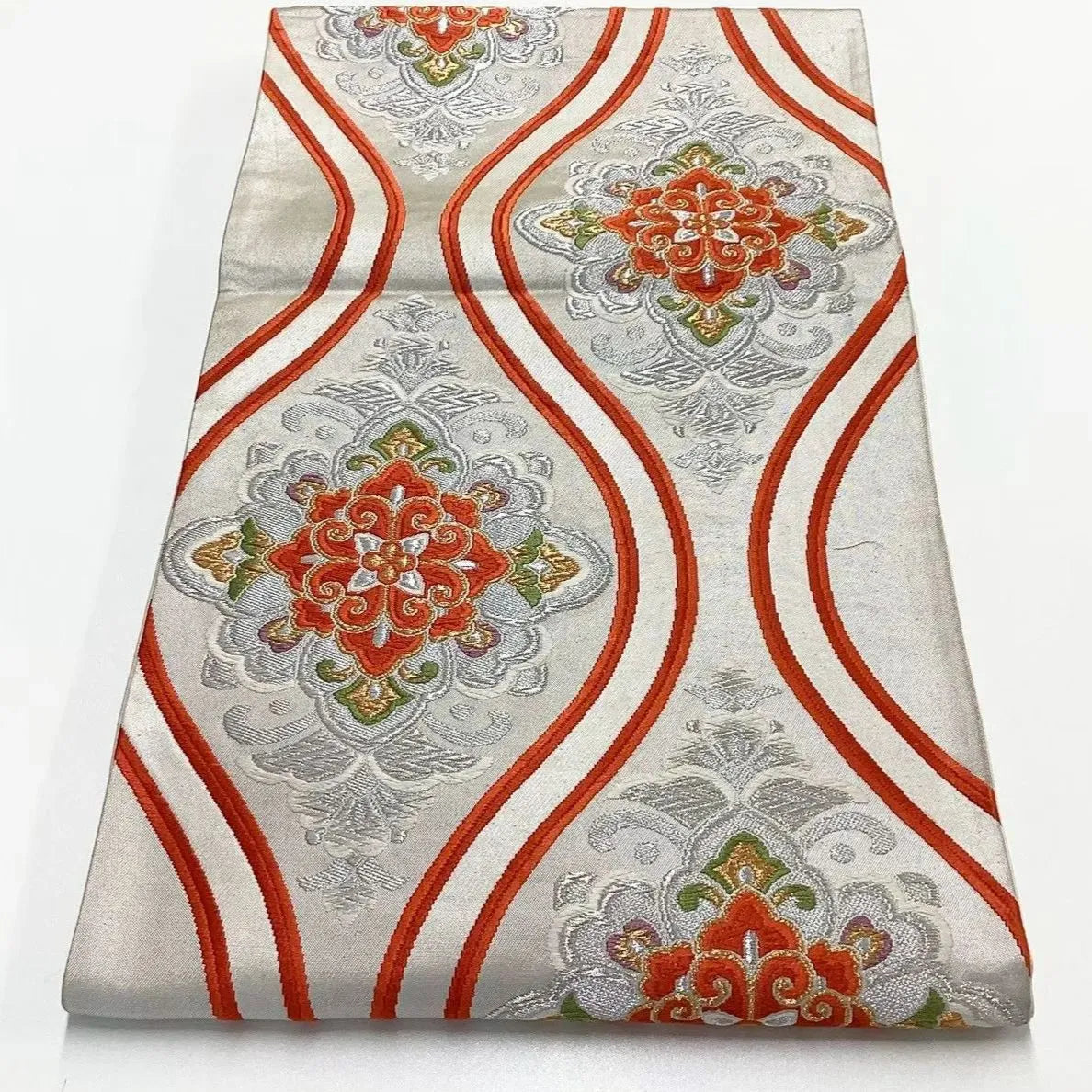 6710# Japanese Vintage Fukuro Obi Belt Kimono Fabric Silk Traditional Silver