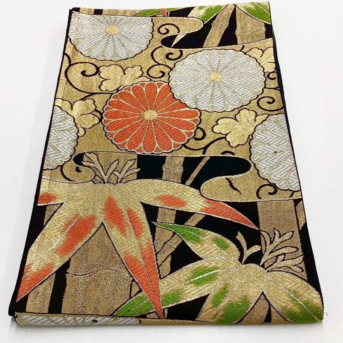 This is a pouch obi with chrysanthemum and bamboo design.