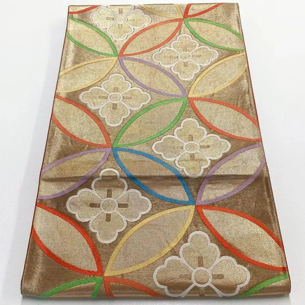 6736# Japanese Vintage Fukuro Obi Belt Kimono Fabric Silk Traditional Gold