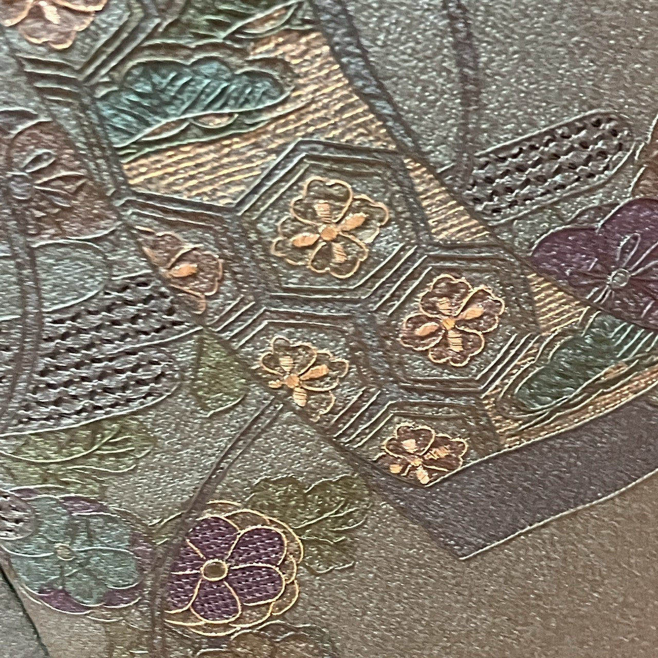 This is a visiting gown with Shantou embroidery, floral design, and gold thread.