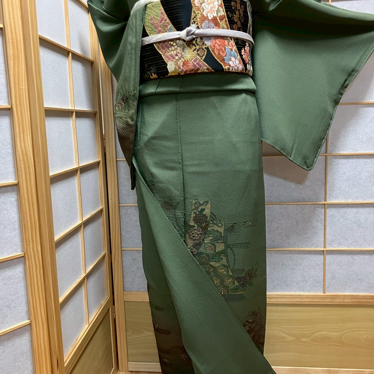 6746# Japanese Kimono Vintage Womens Silk Fabric Robe Kimono only sold Green