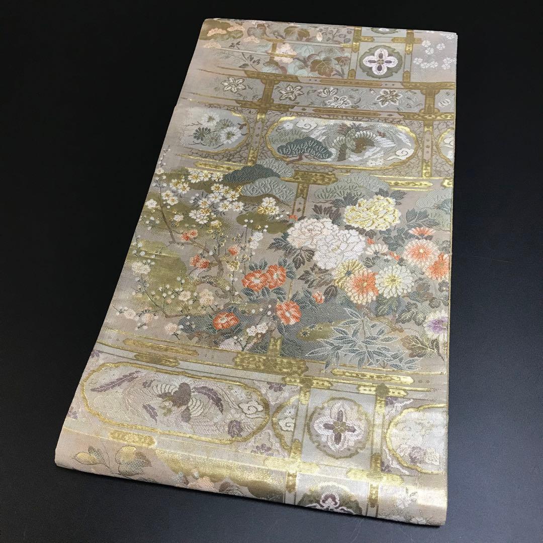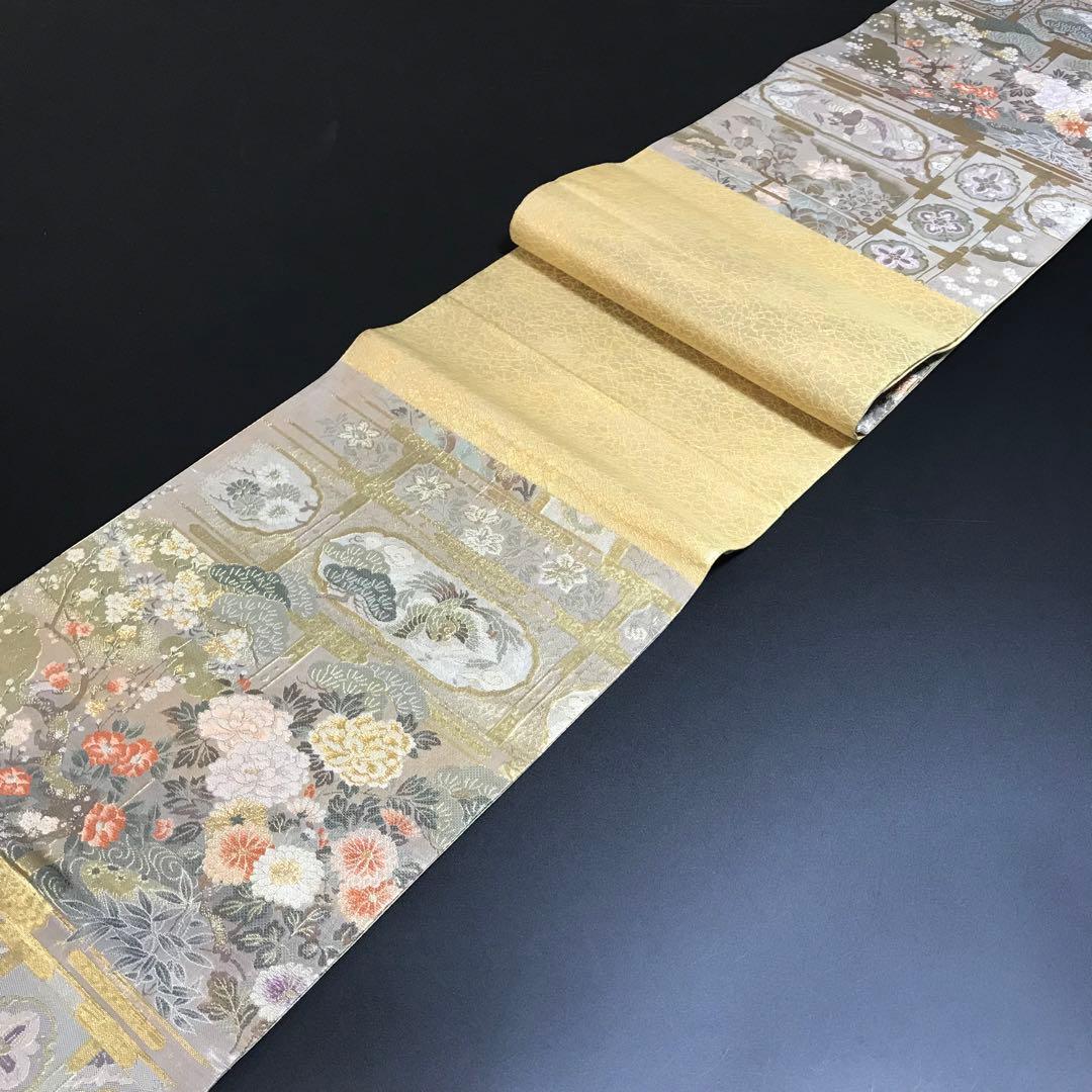6760# Japanese Vintage Fukuro Obi Belt Kimono Fabric Silk Traditional Silver