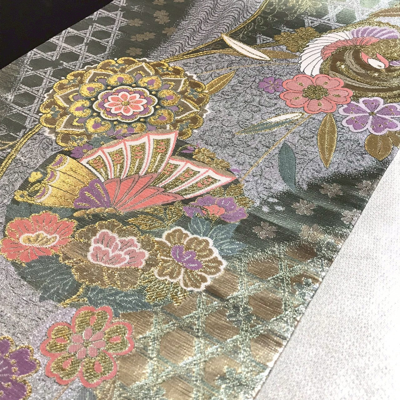 6797# Japanese Vintage Fukuro Obi Belt Kimono Fabric Silk Traditional Silver