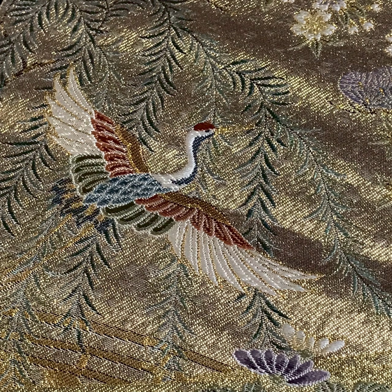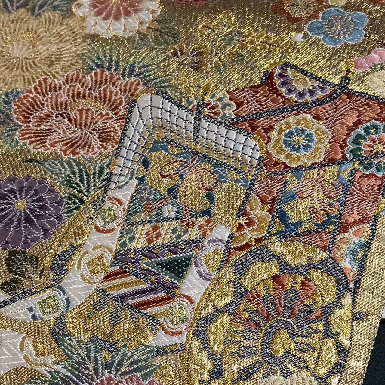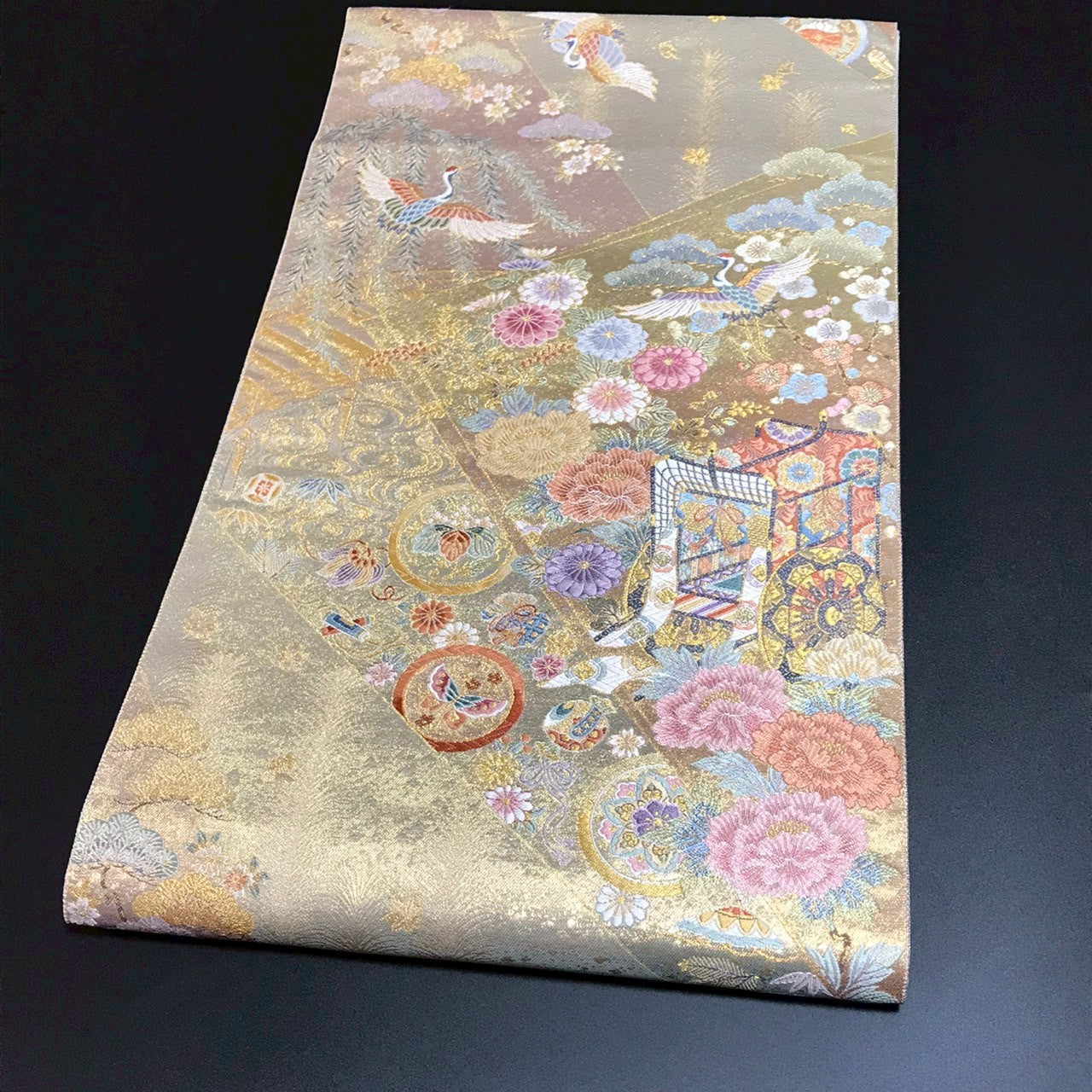 This is a Nishijin brocade pouch obi with gold threads.