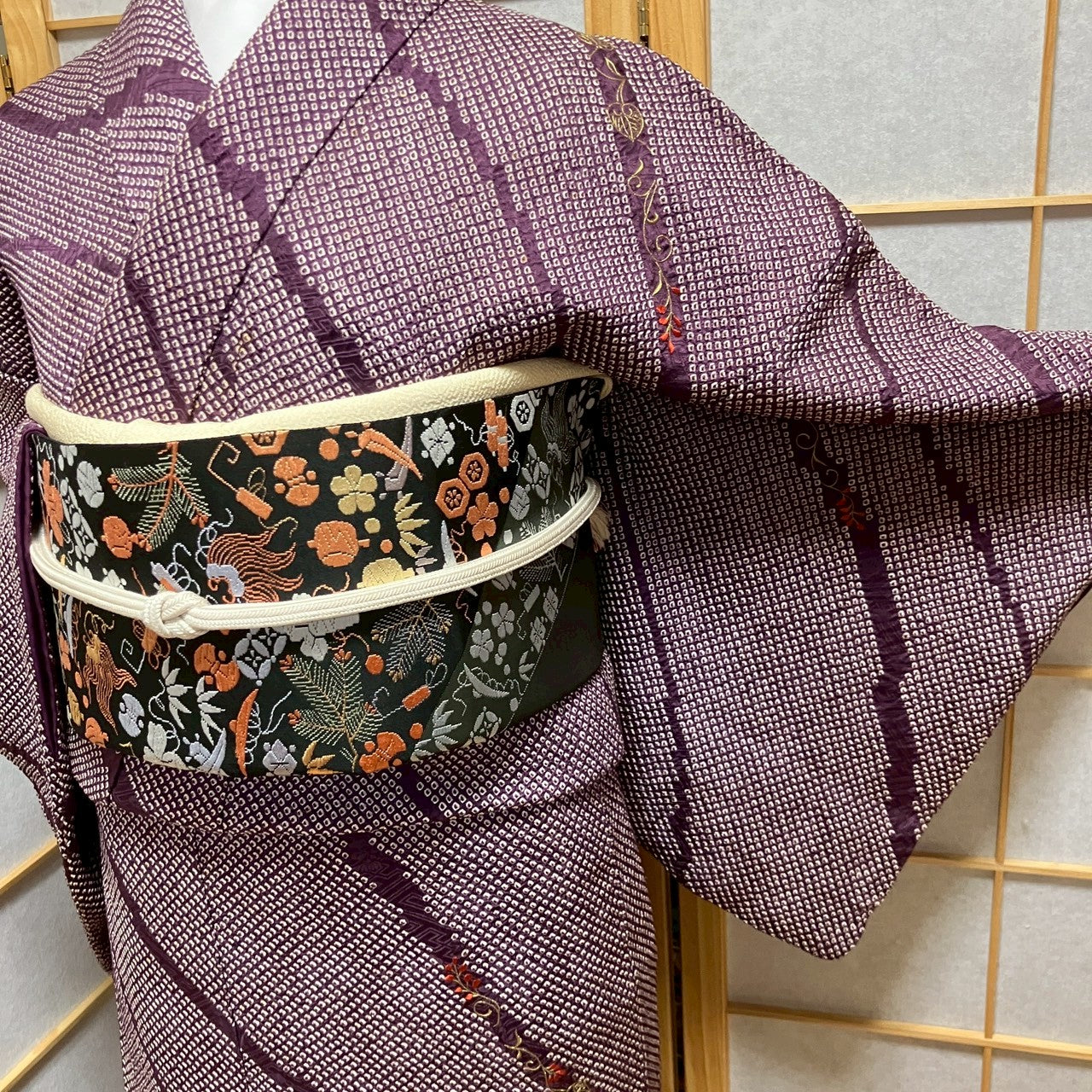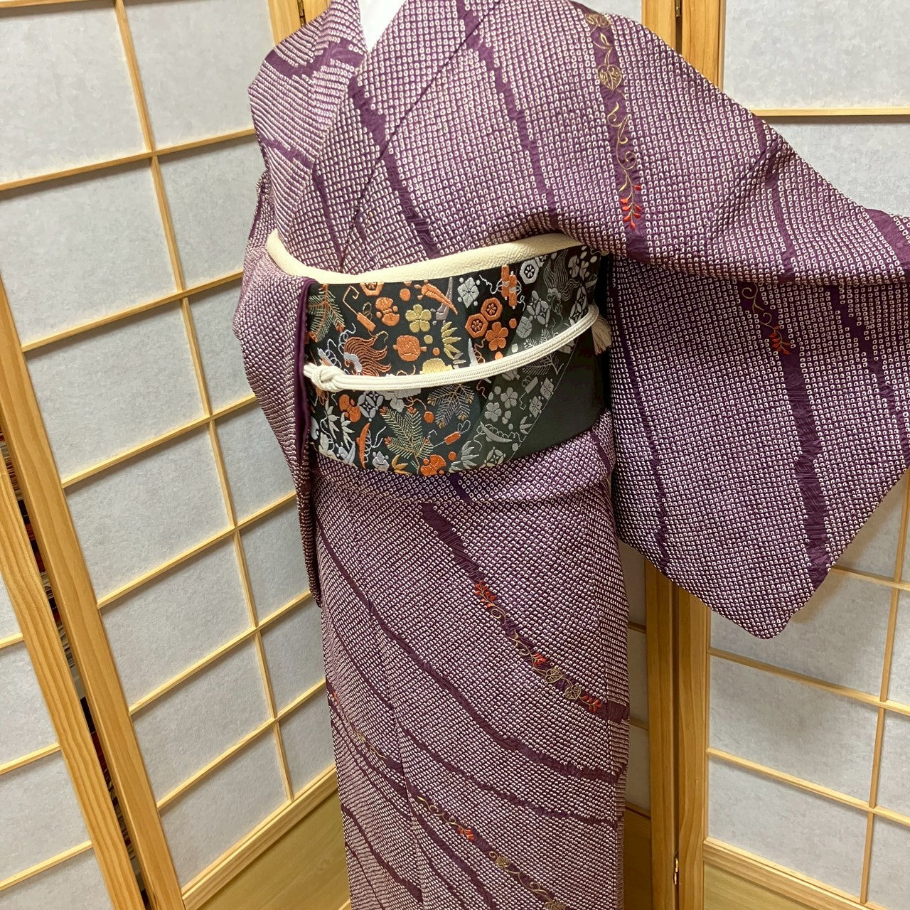 This kimono does not come with an obi (belt) and accessories. Kimono clothing is only sold.