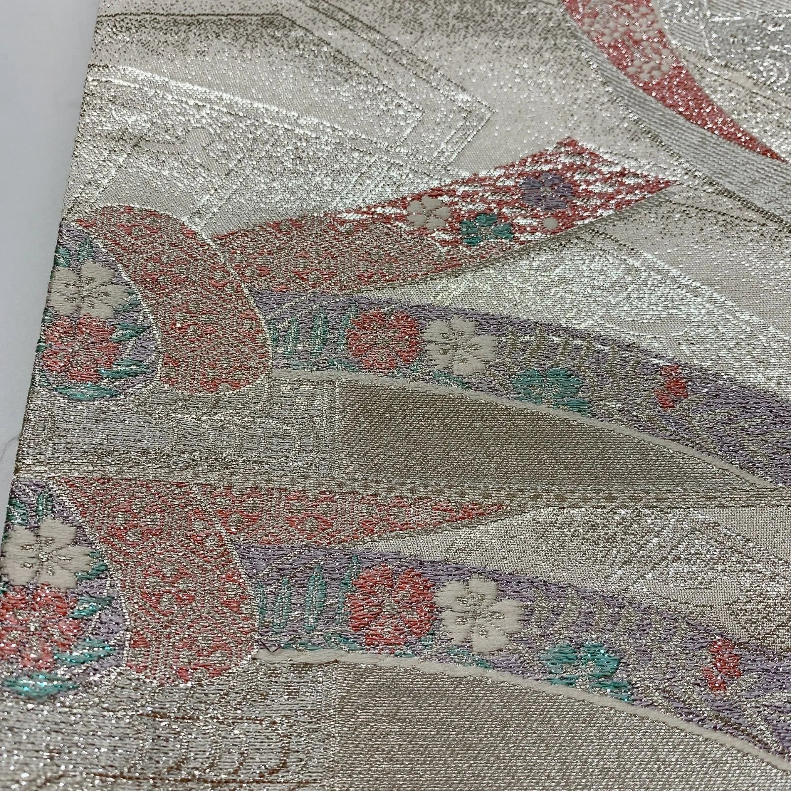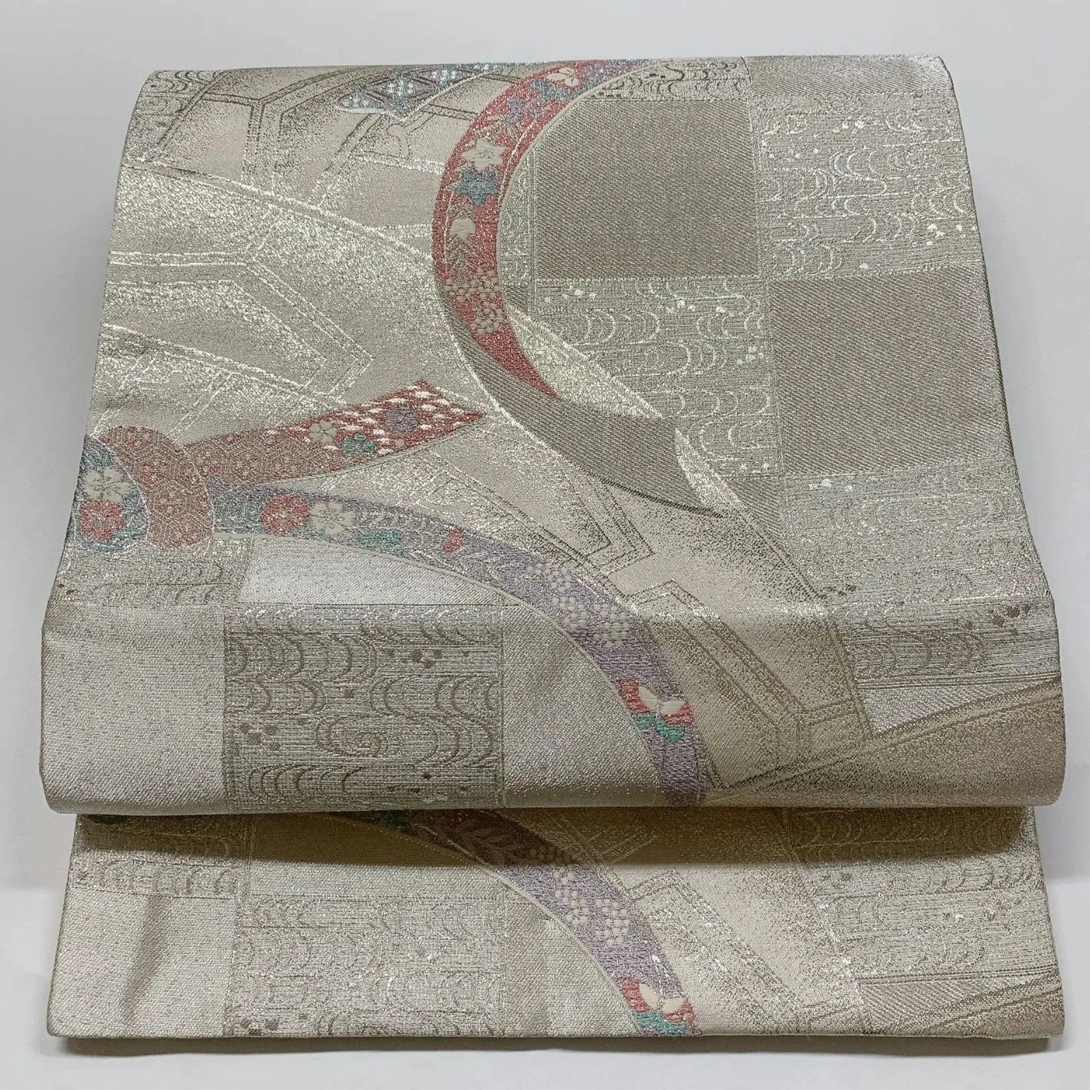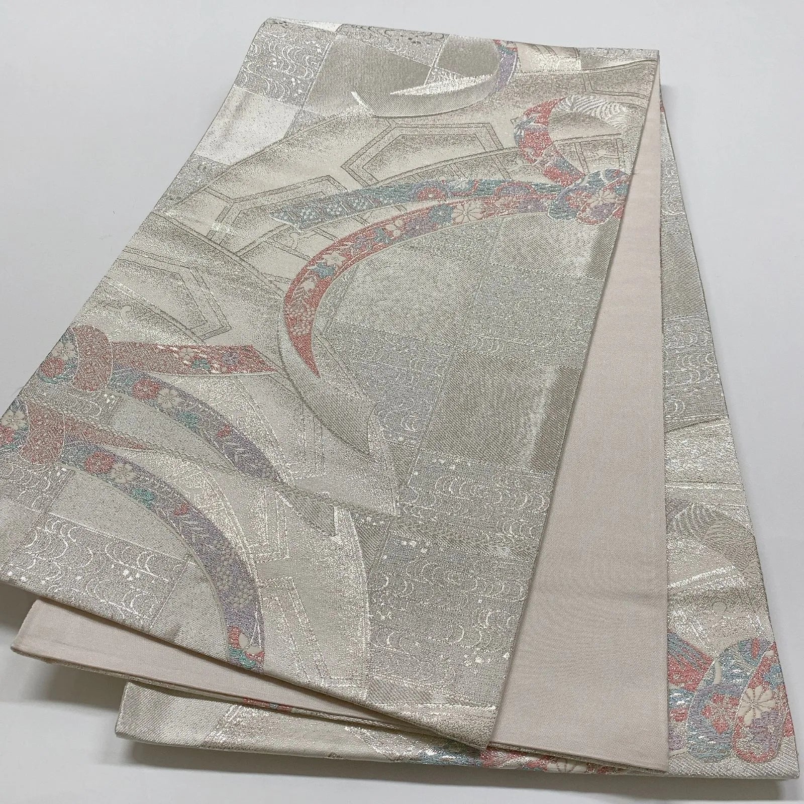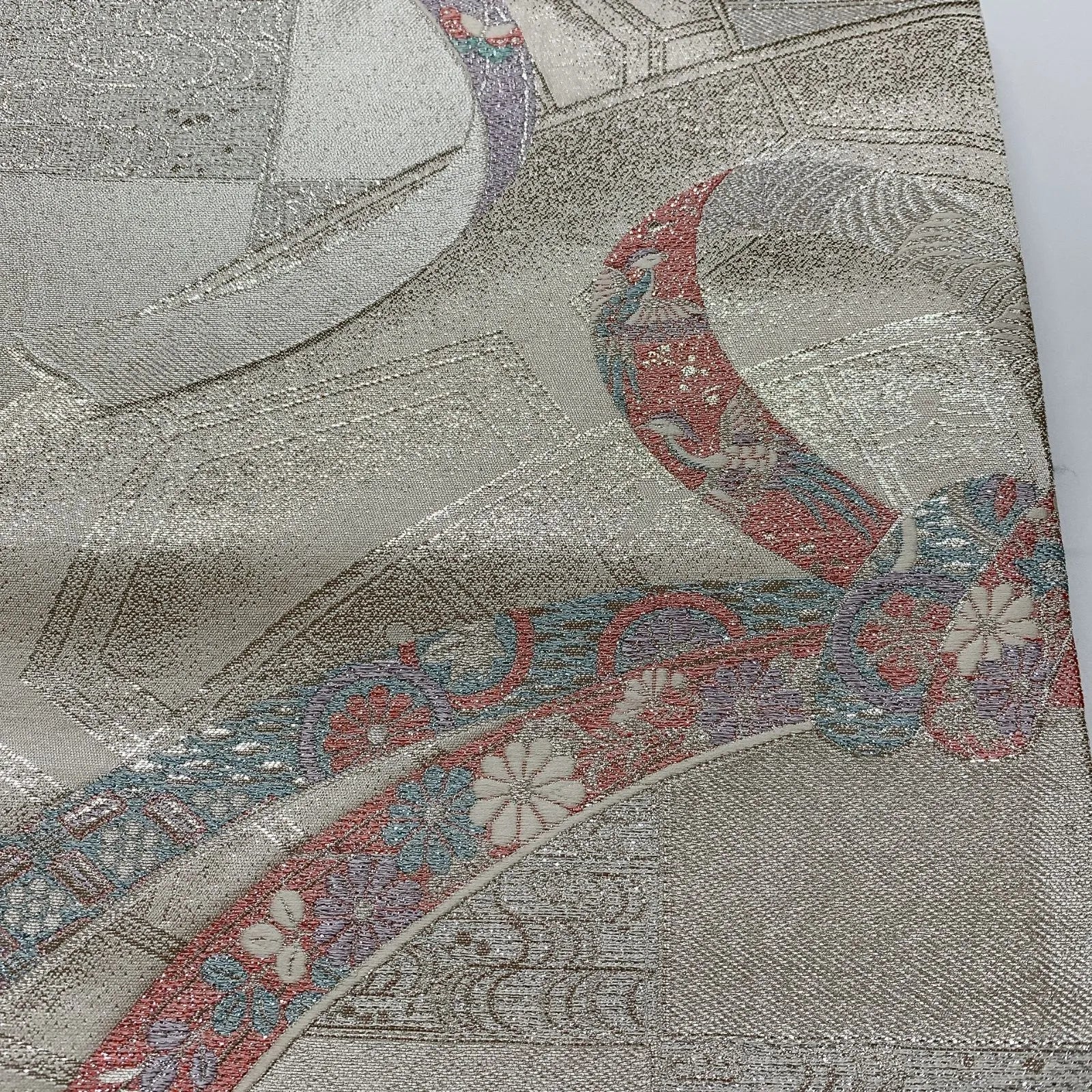 6823# Japanese Vintage Fukuro Obi Belt Kimono Fabric Silk Traditional Silver