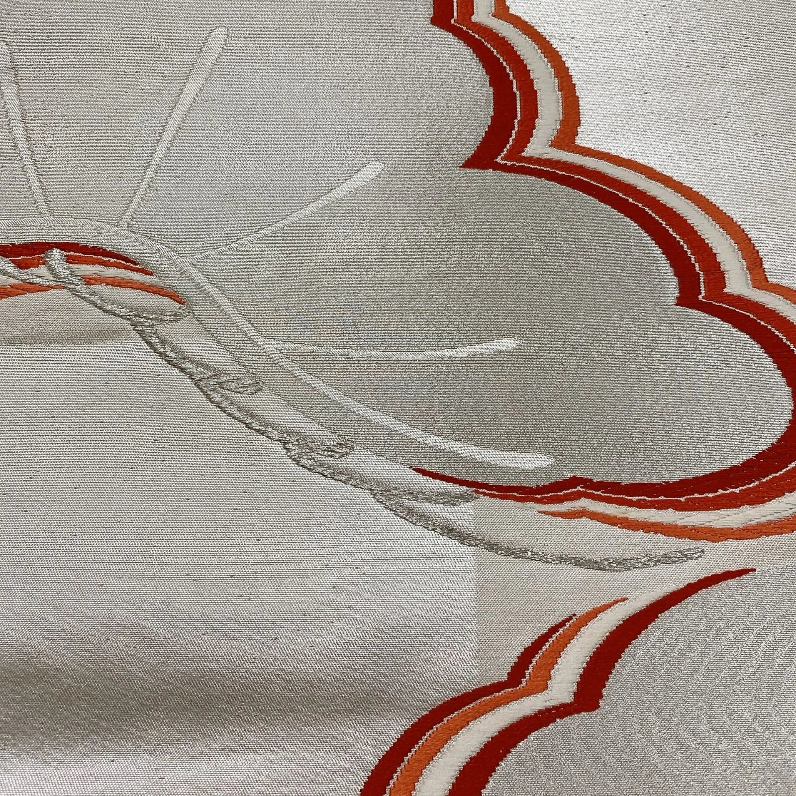 6865# Japanese Vintage Fukuro Obi Belt Kimono Fabric Silk Traditional Silver