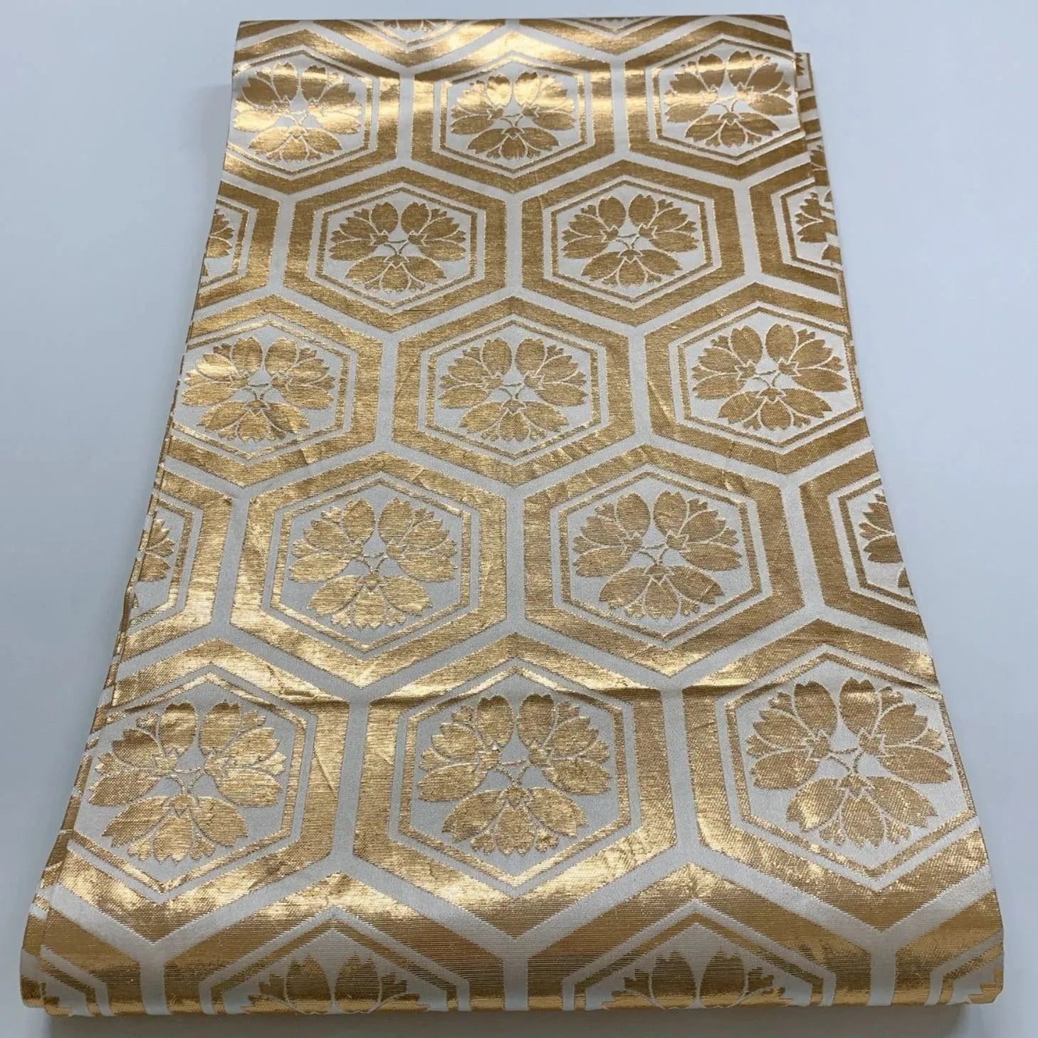 6872# Japanese Vintage Fukuro Obi Belt Kimono Fabric Silk All-over pattern