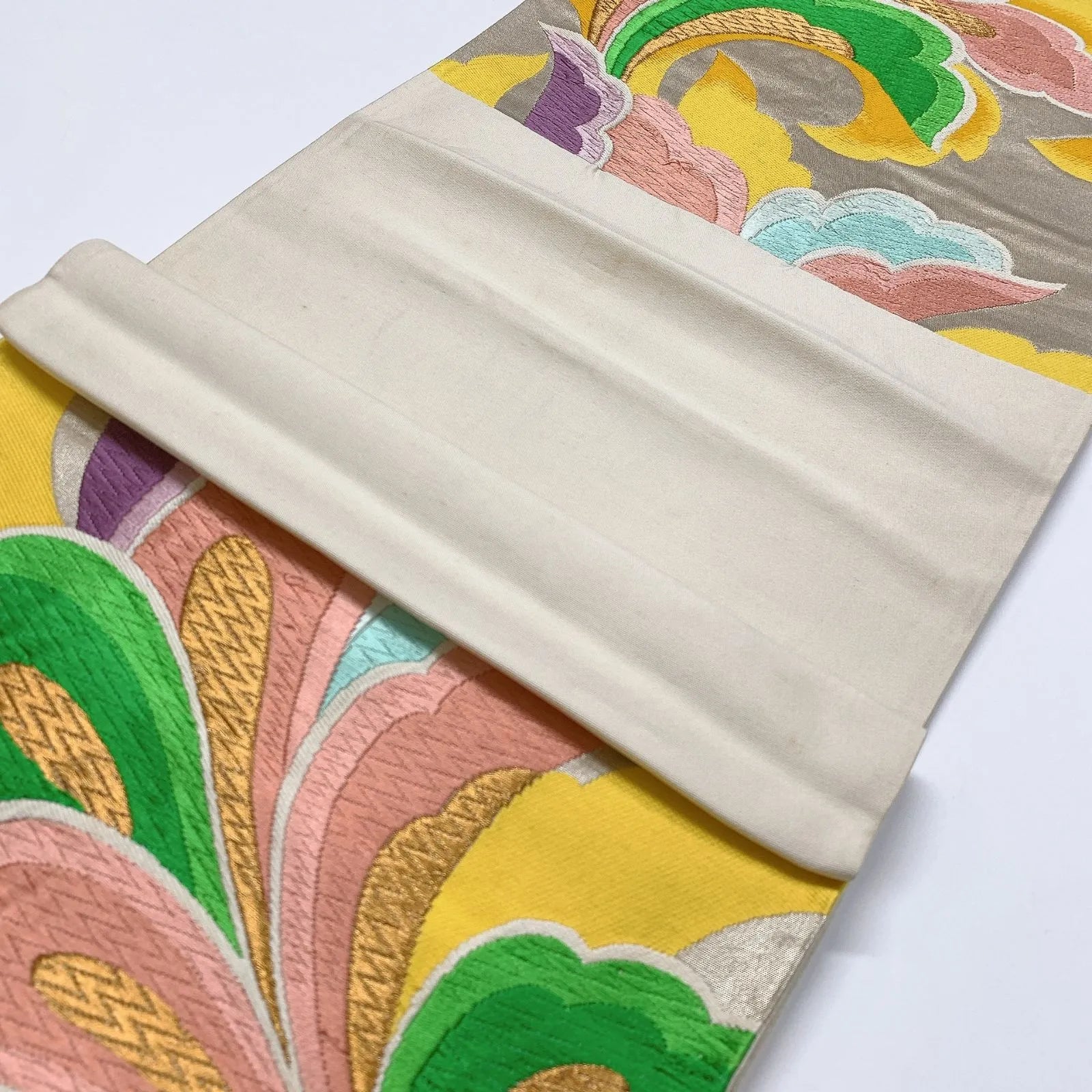 6879# Japanese Vintage Fukuro Obi Belt Kimono Fabric Silk Traditional Embroidery