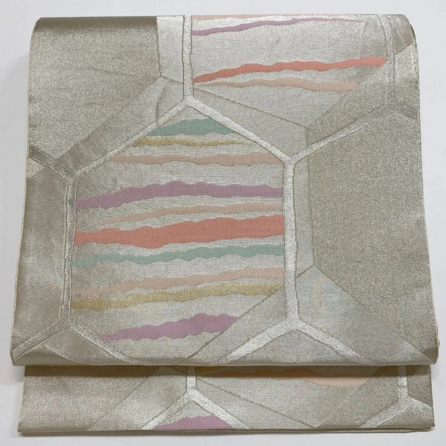 6882# Japanese Vintage Fukuro Obi Belt Kimono Fabric Silk Traditional Silver