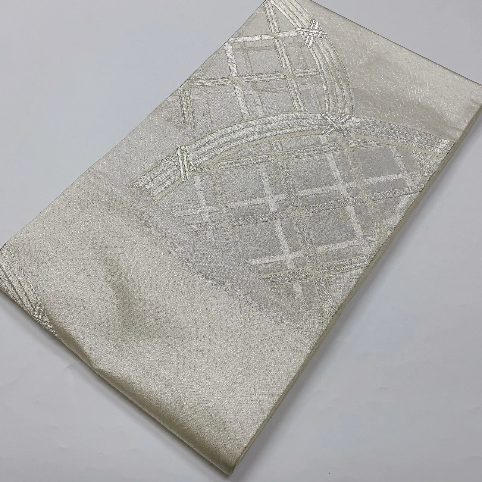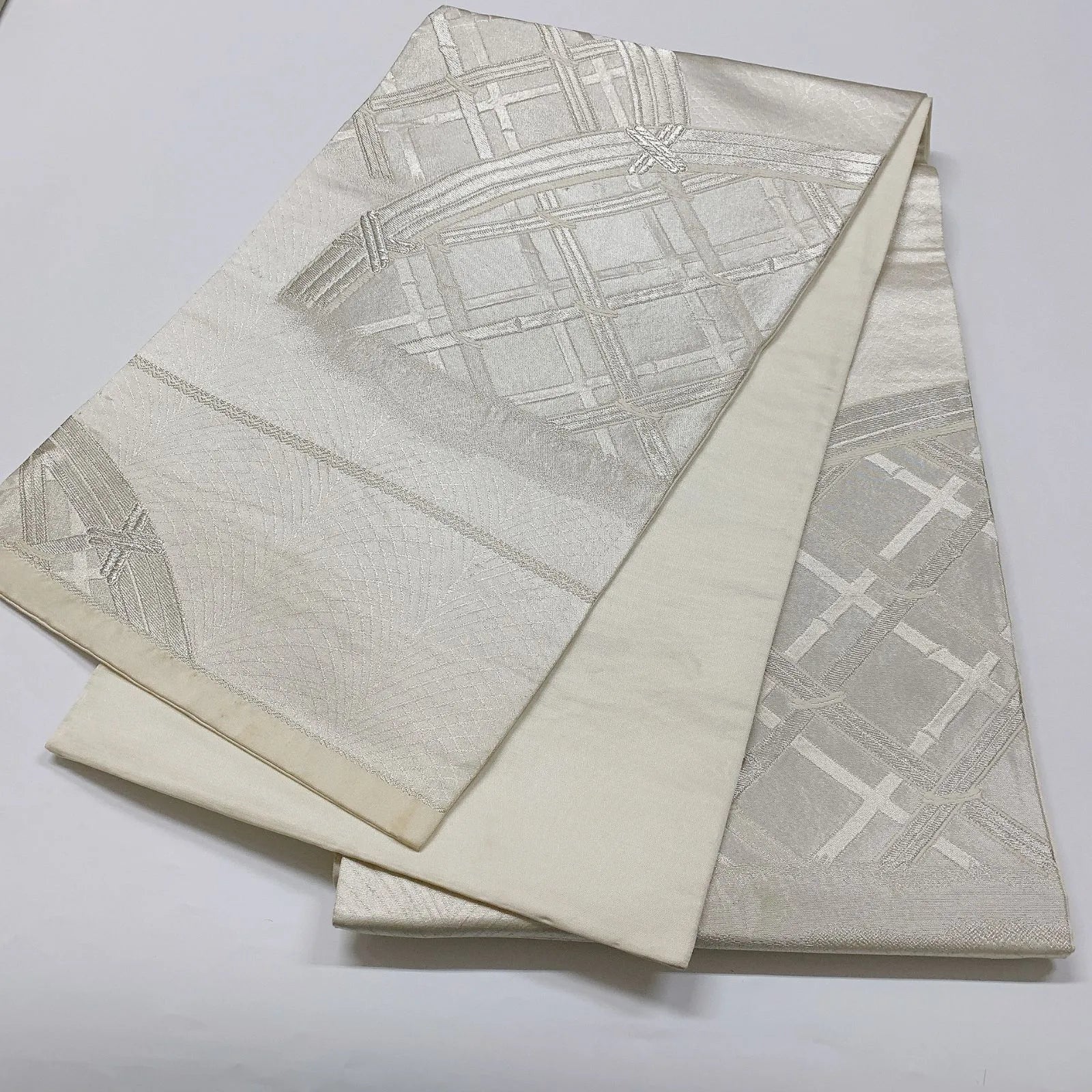 6894# Japanese Vintage Fukuro Obi Belt Kimono Fabric Silk Traditional Silver