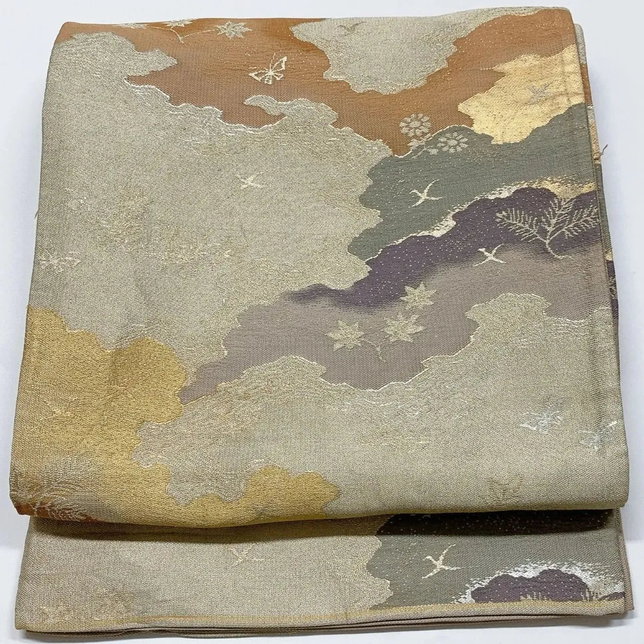6897# Japanese Vintage Fukuro Obi Belt Kimono Fabric Silk Traditional Untailored