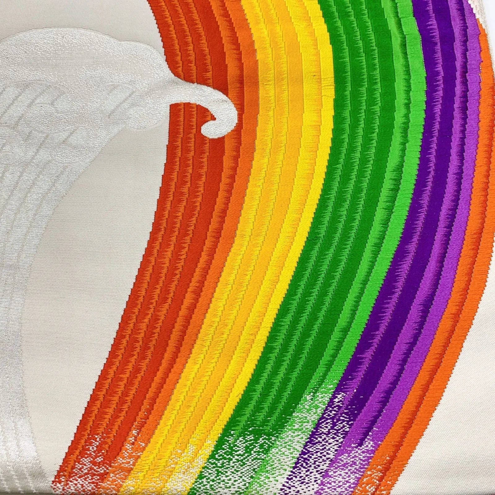 This is a pouch obi with a wave pattern and embroidery.