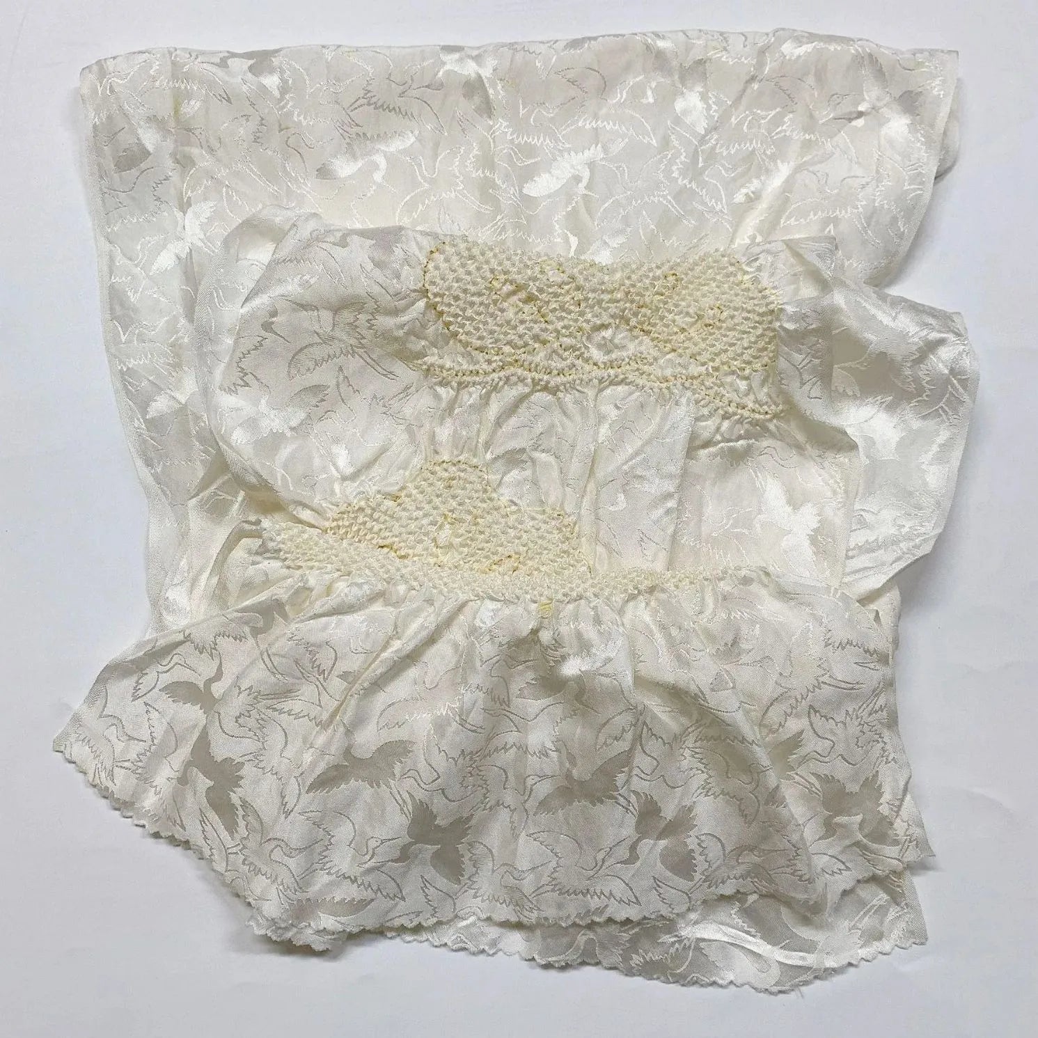 This is a set of two obijime and obiage with a pine and crane design and shibori.