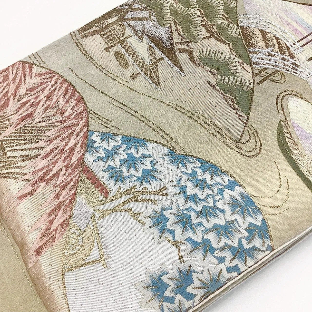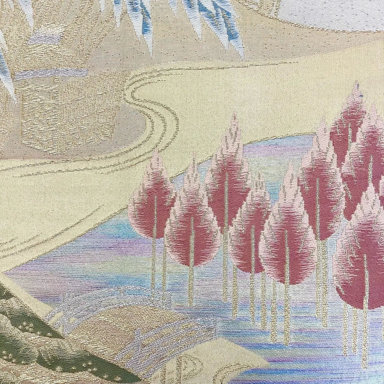 This pouch obi has a forest landscape design.