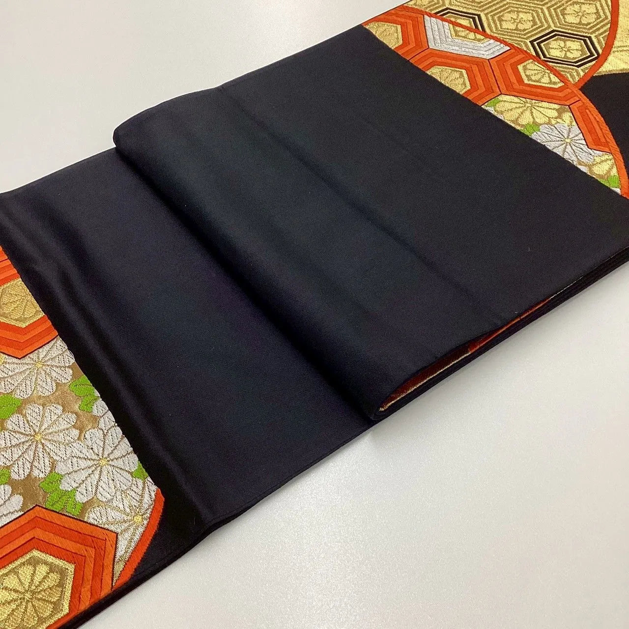 7008# Japanese Vintage Fukuro Obi Belt Kimono Fabric Silk Traditional Black