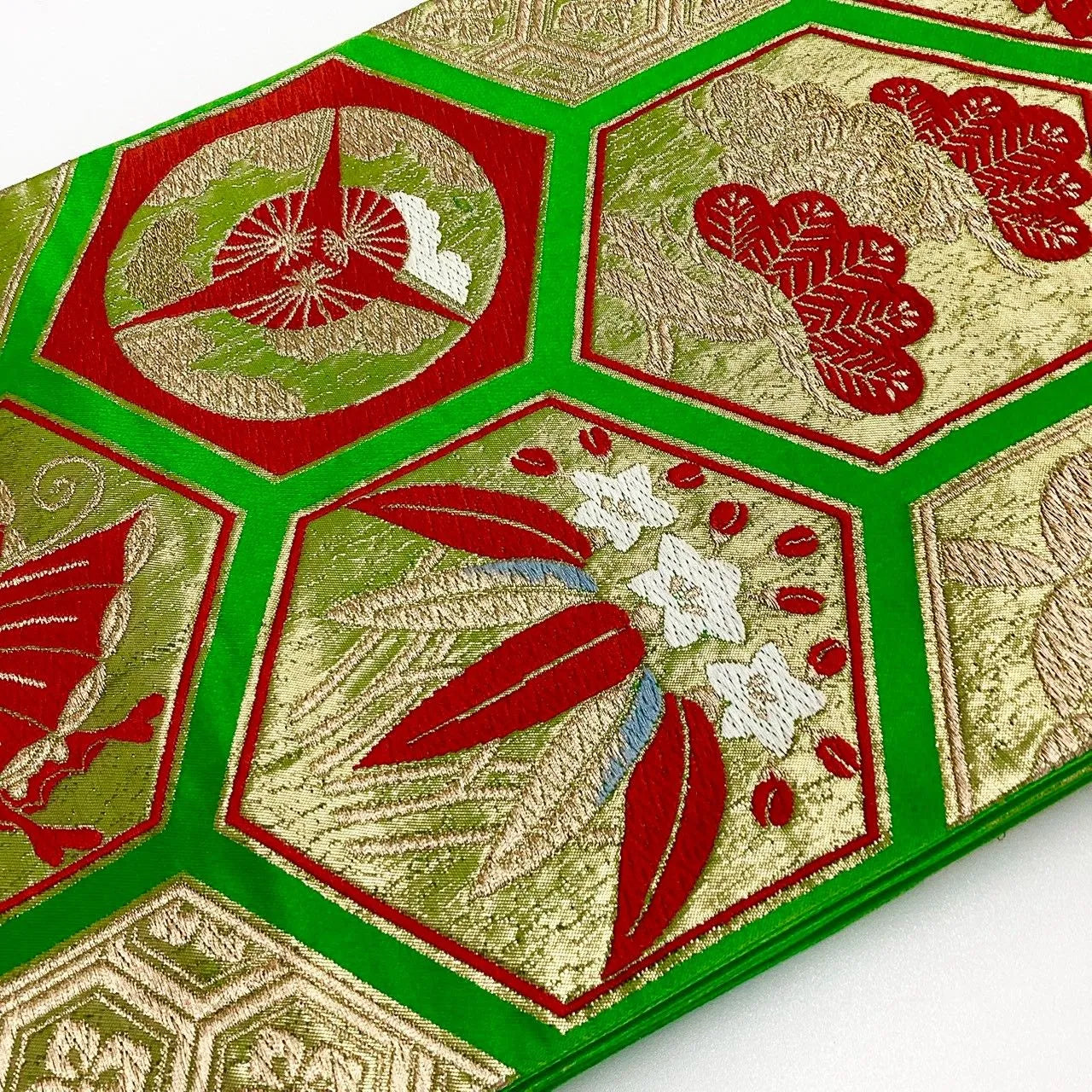 This pouch obi has a pine tree and butterfly design.