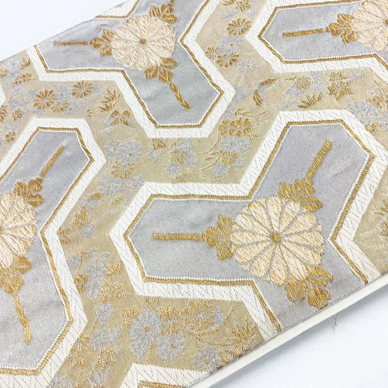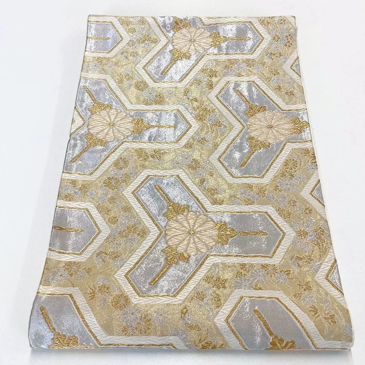 Gold and silver colored pouch obi.