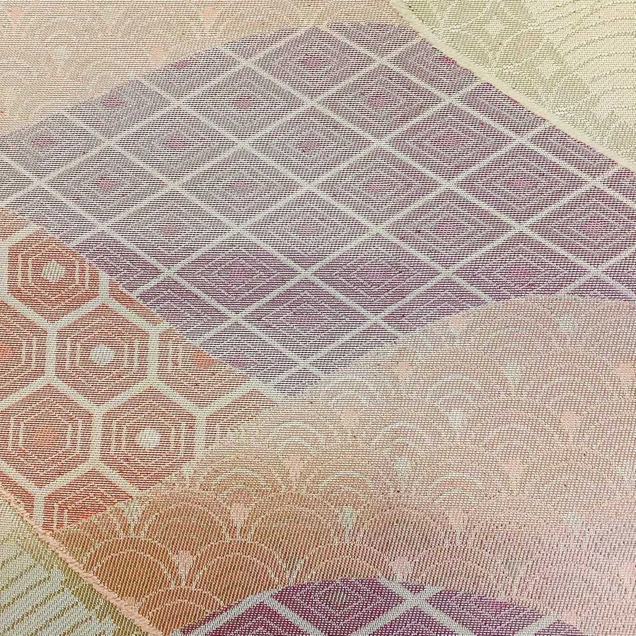 7019# Japanese Vintage Fukuro Obi Belt Kimono Fabric Silk Traditional Silver
