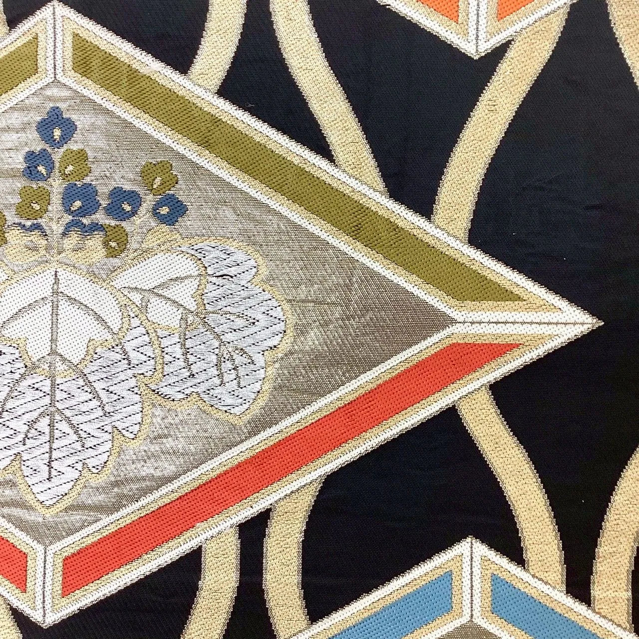 7025# Japanese Vintage Fukuro Obi Belt Kimono Fabric Silk Traditional Black