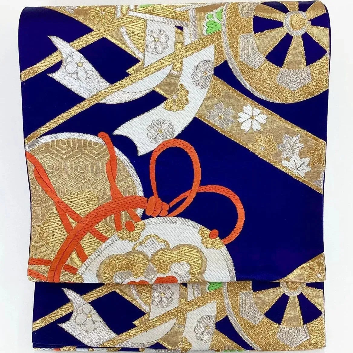 7030# Japanese Vintage Fukuro Obi Belt Kimono Fabric Silk Traditional Blue