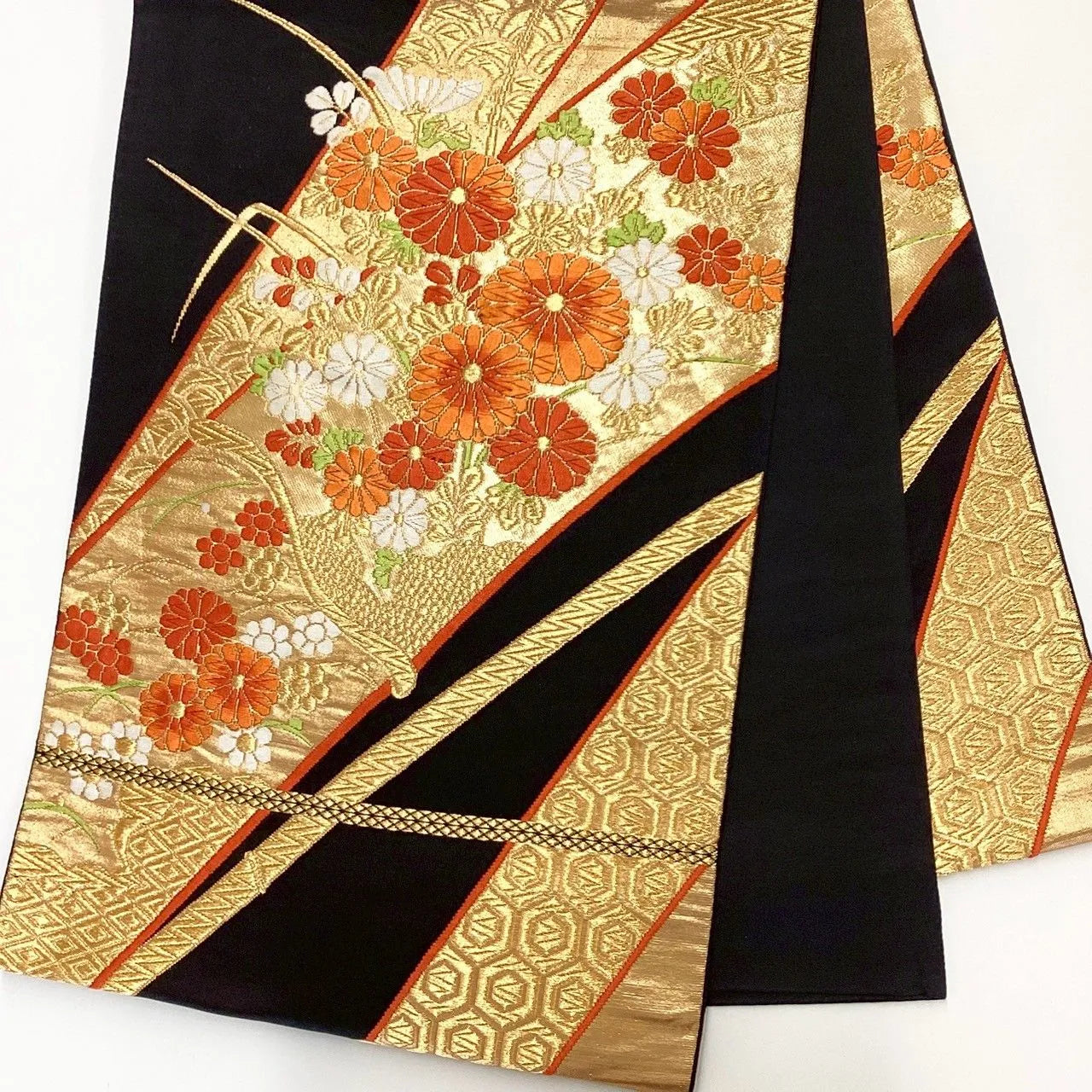 7041# Japanese Vintage Fukuro Obi Belt Kimono Fabric Silk Traditional Black