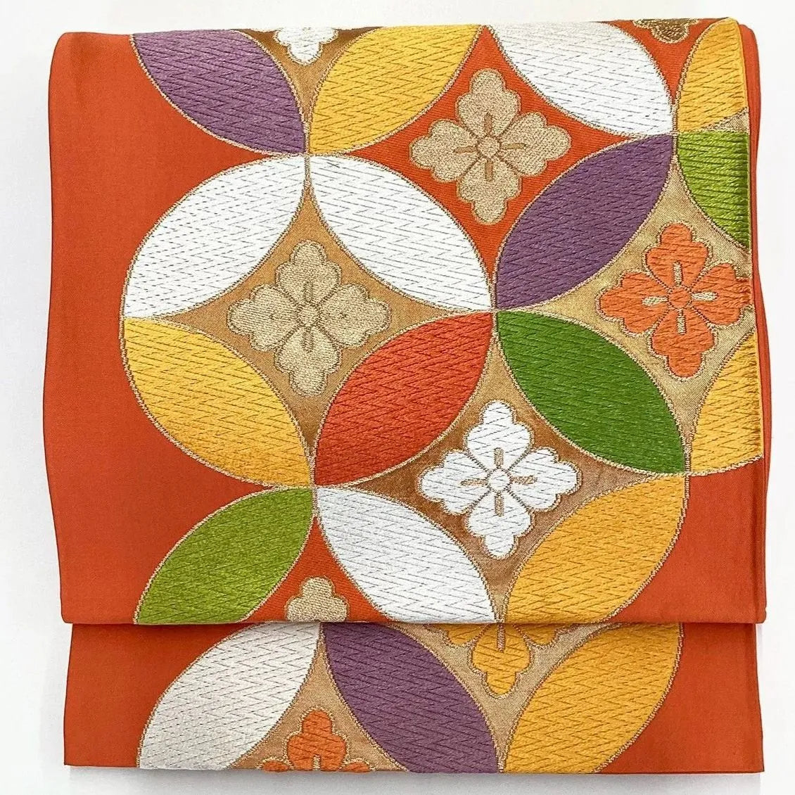 7052# Japanese Vintage Fukuro Obi Belt Kimono Fabric Silk Traditional Embroidery