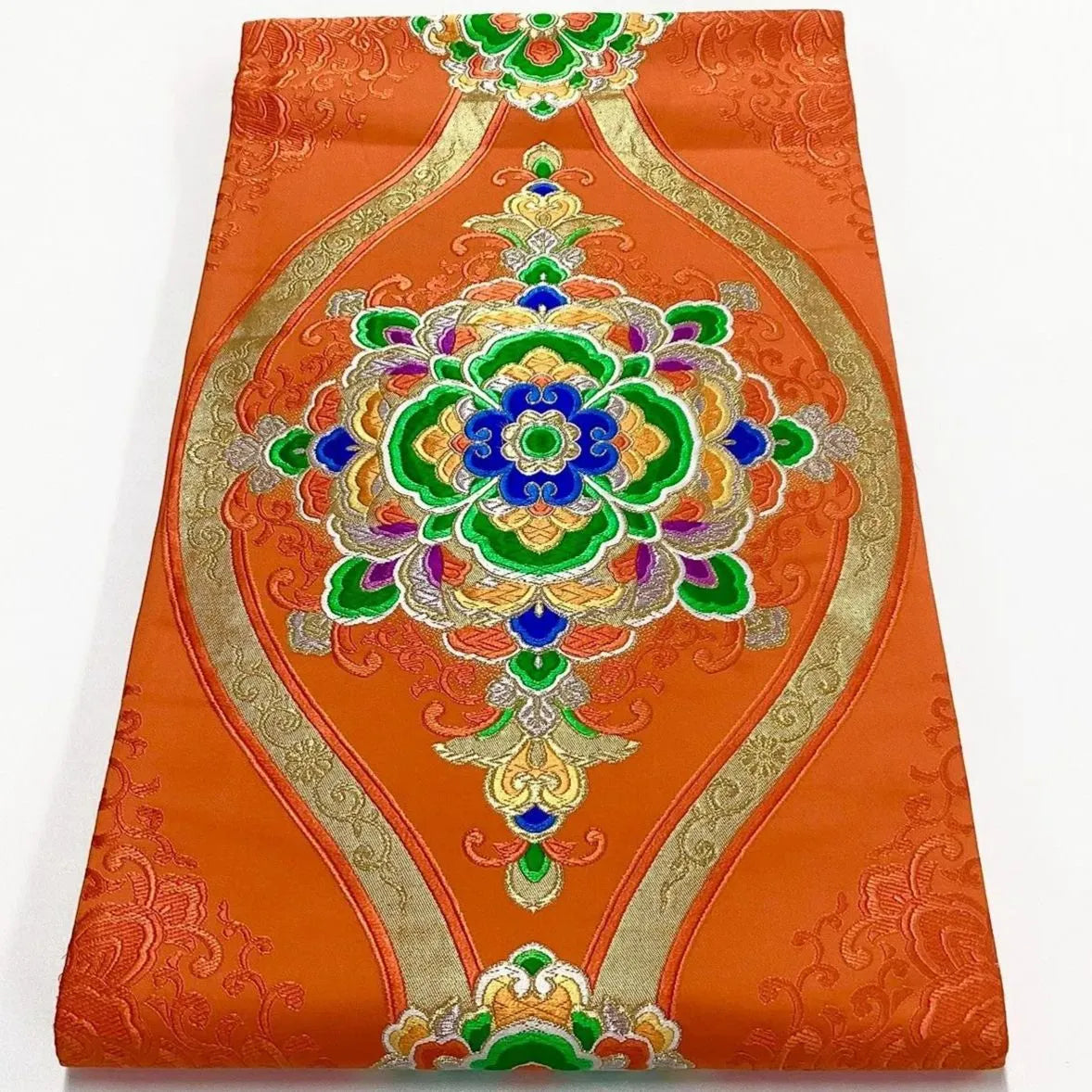 7056# Japanese Vintage Fukuro Obi Belt Kimono Fabric Silk Traditional Embroidery