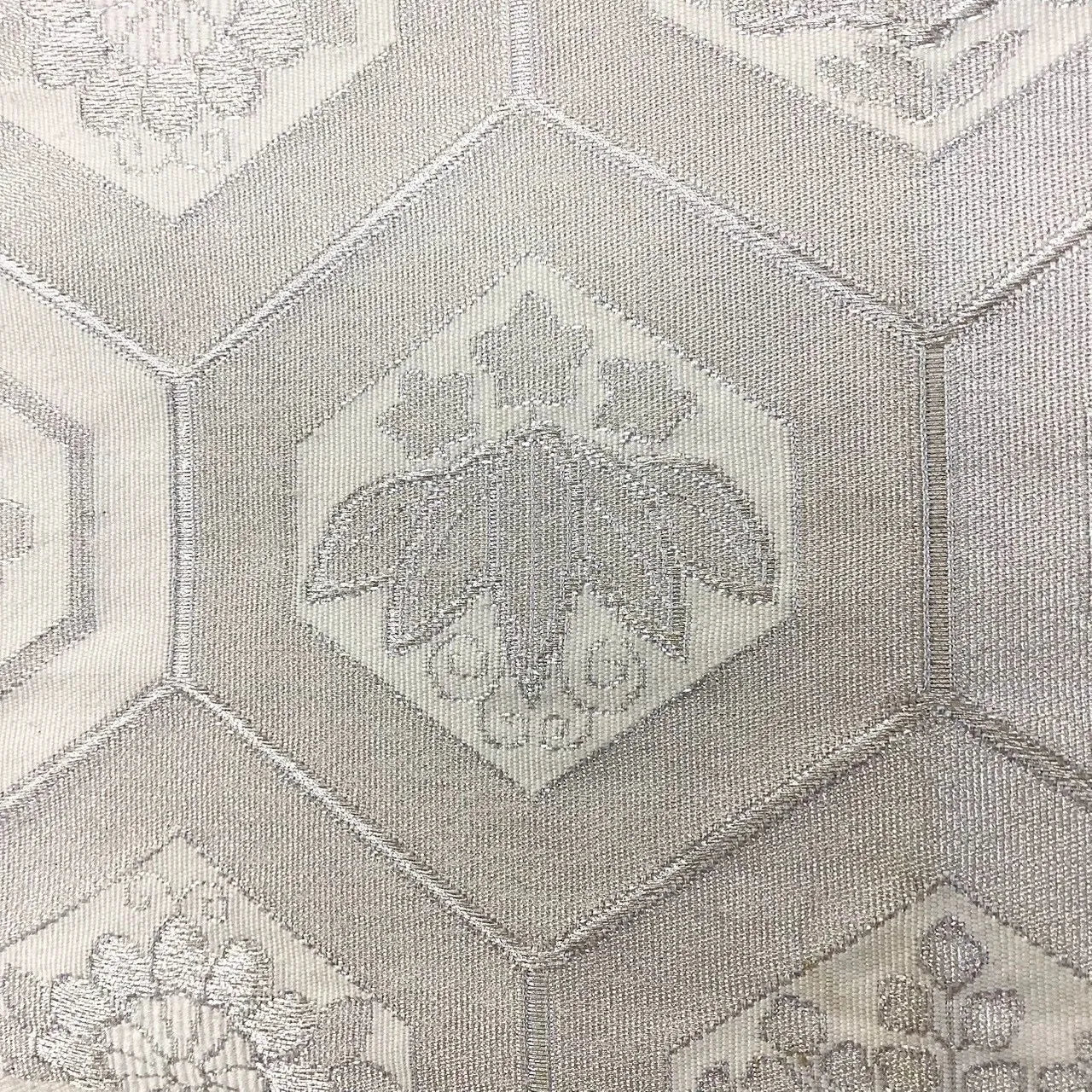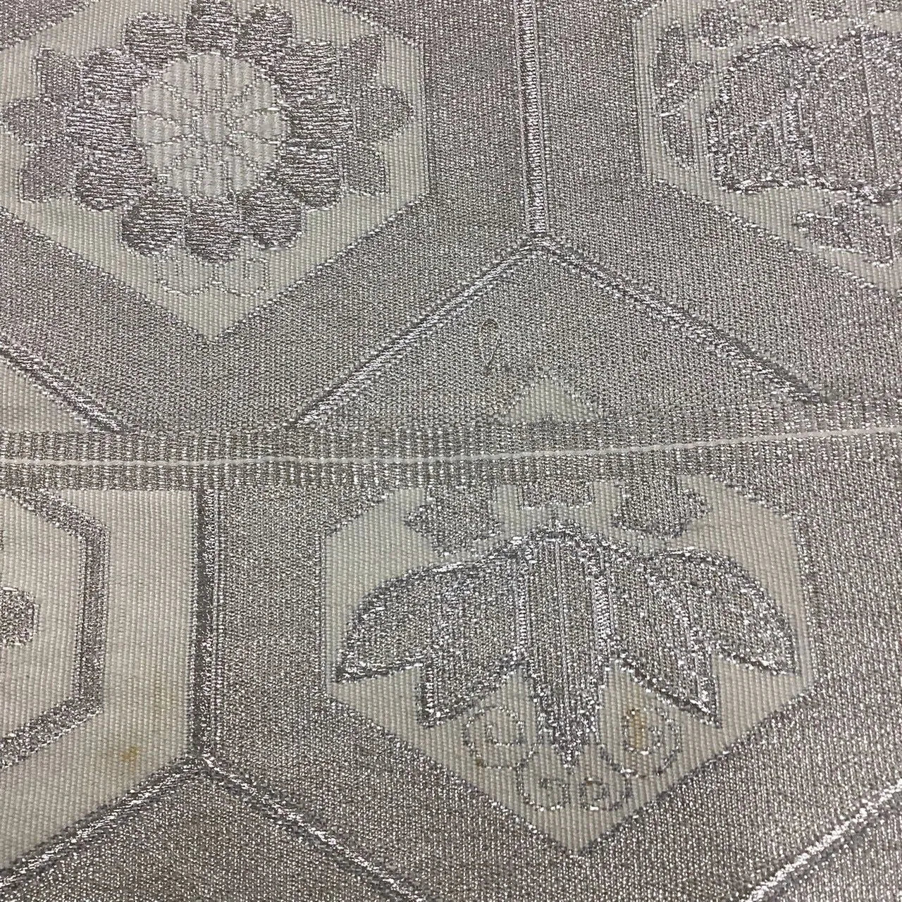 7065# Japanese Vintage Fukuro Obi Belt Kimono Fabric Silk Traditional Silver