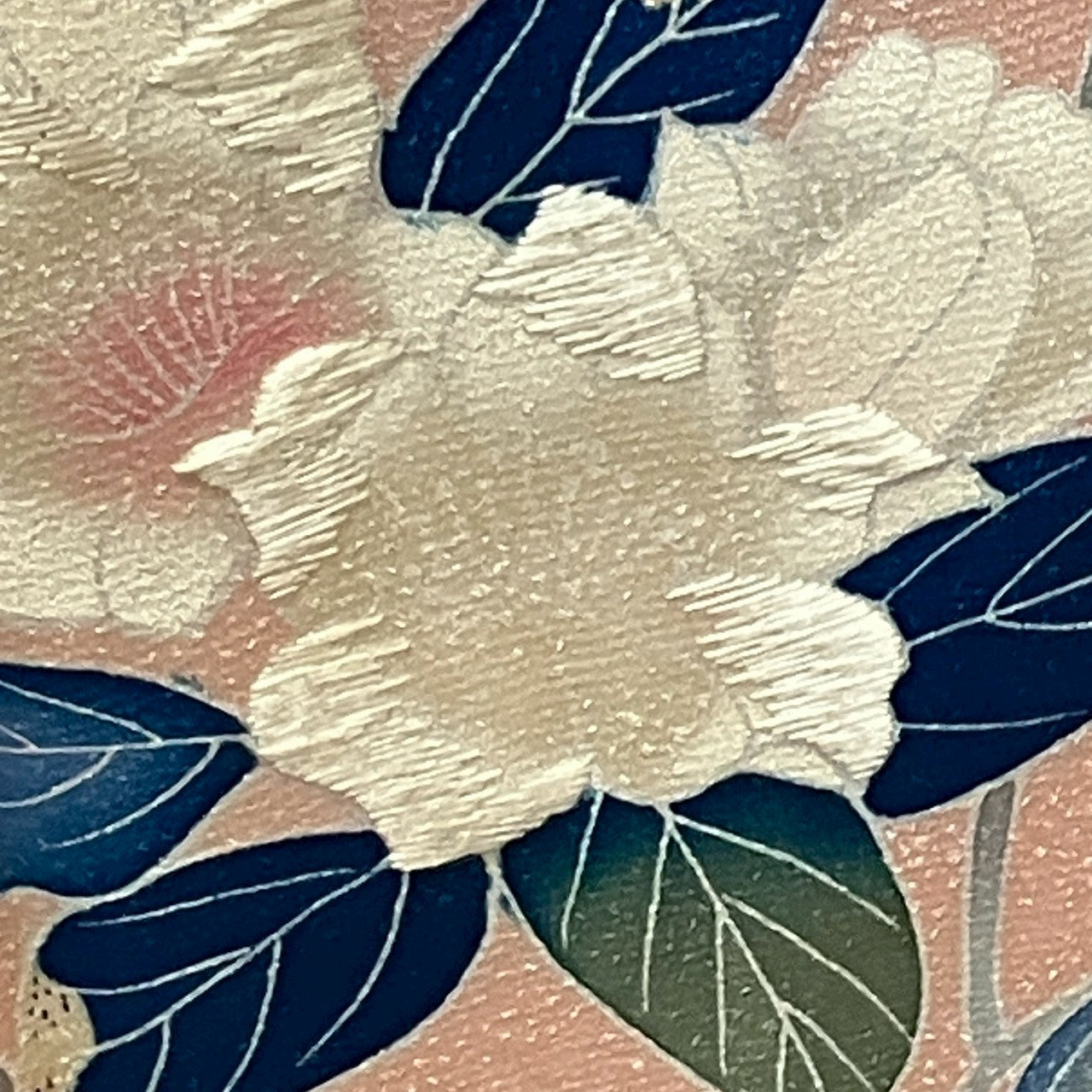 This is a visiting gown of hand-painted yuzen, floral design, and embroidery.