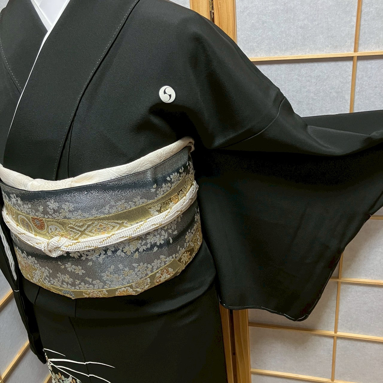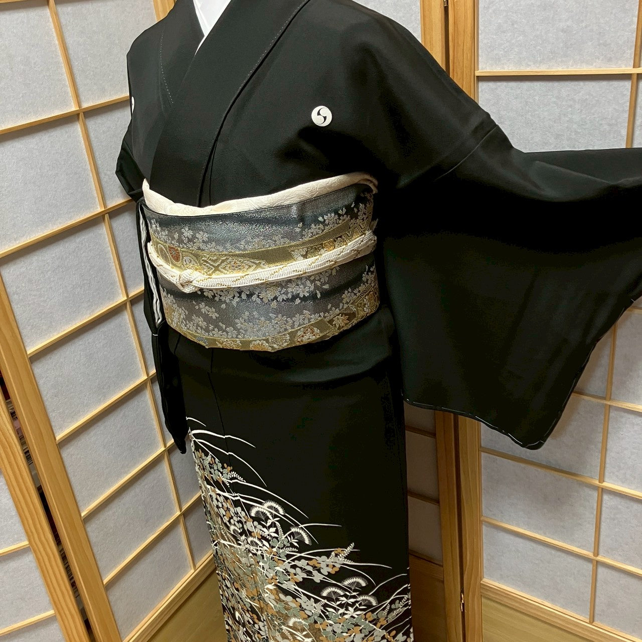 This is an artist's black tomesode with gold coloring.