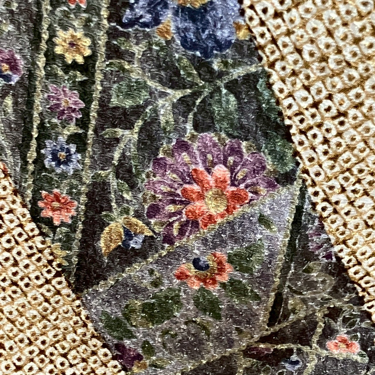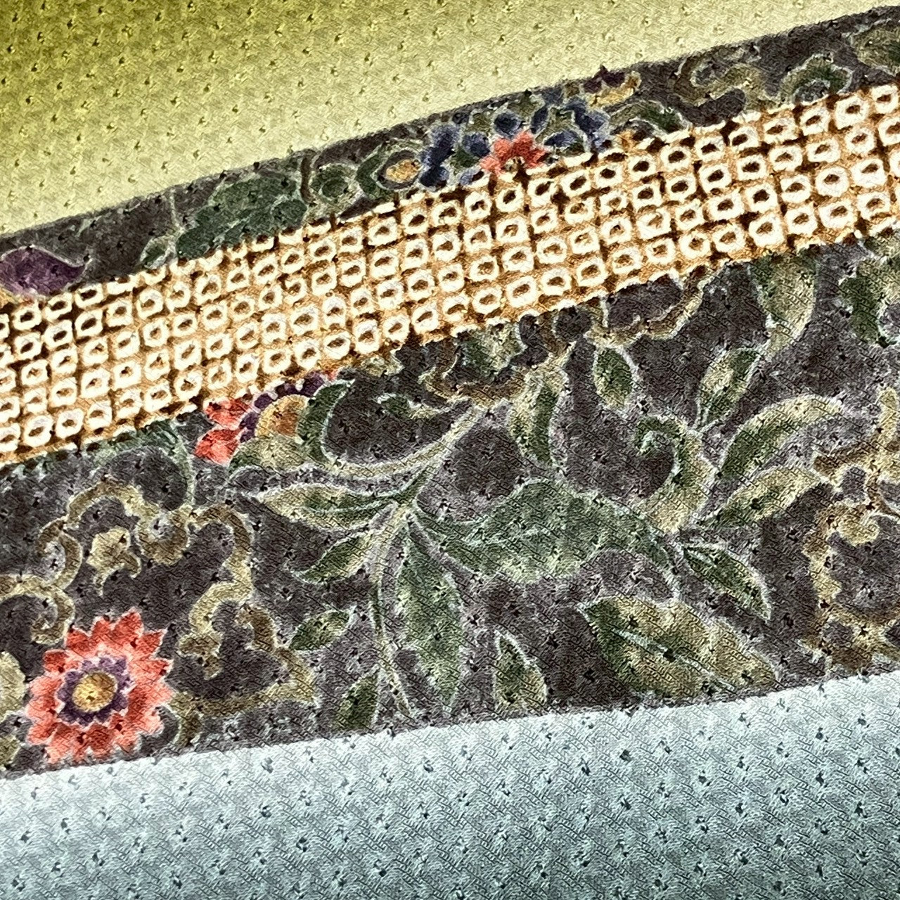 This is a visiting gown with a floral design and shibori.