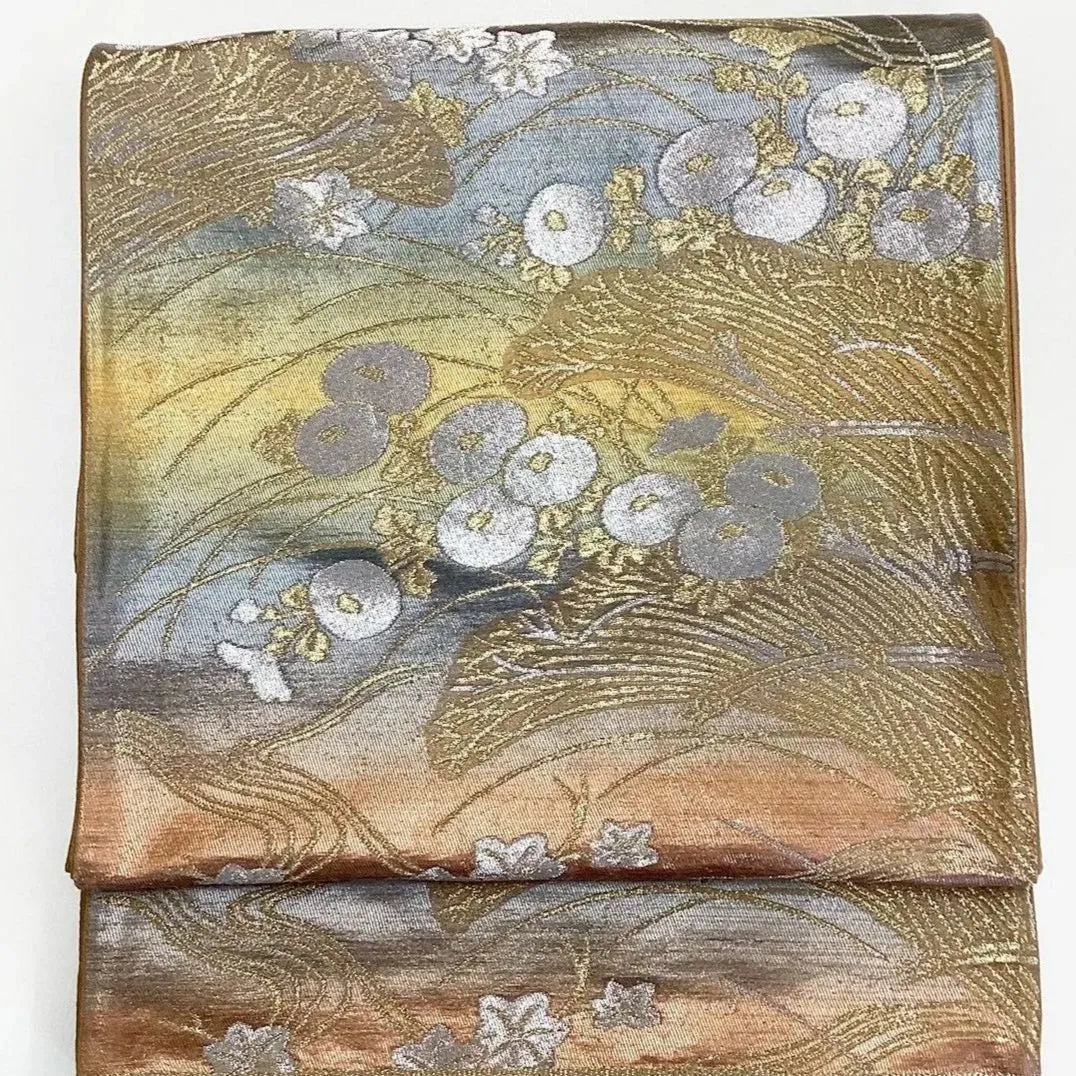 This is a bag obi featuring chrysanthemum and floral patterns.