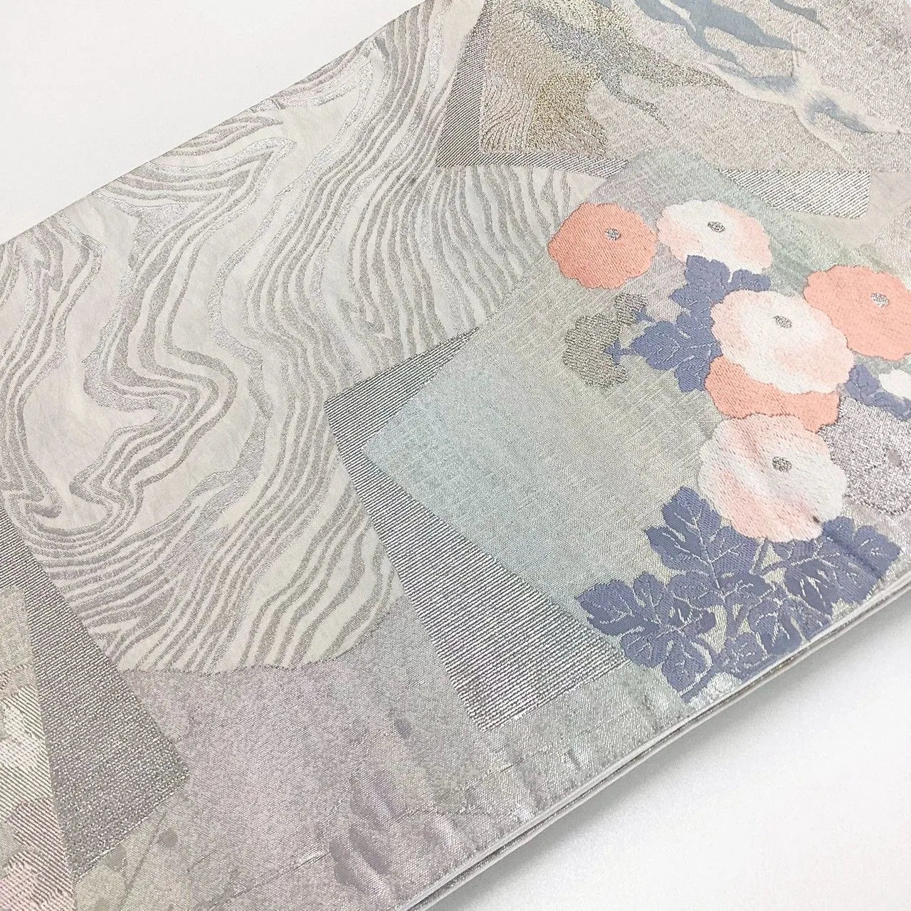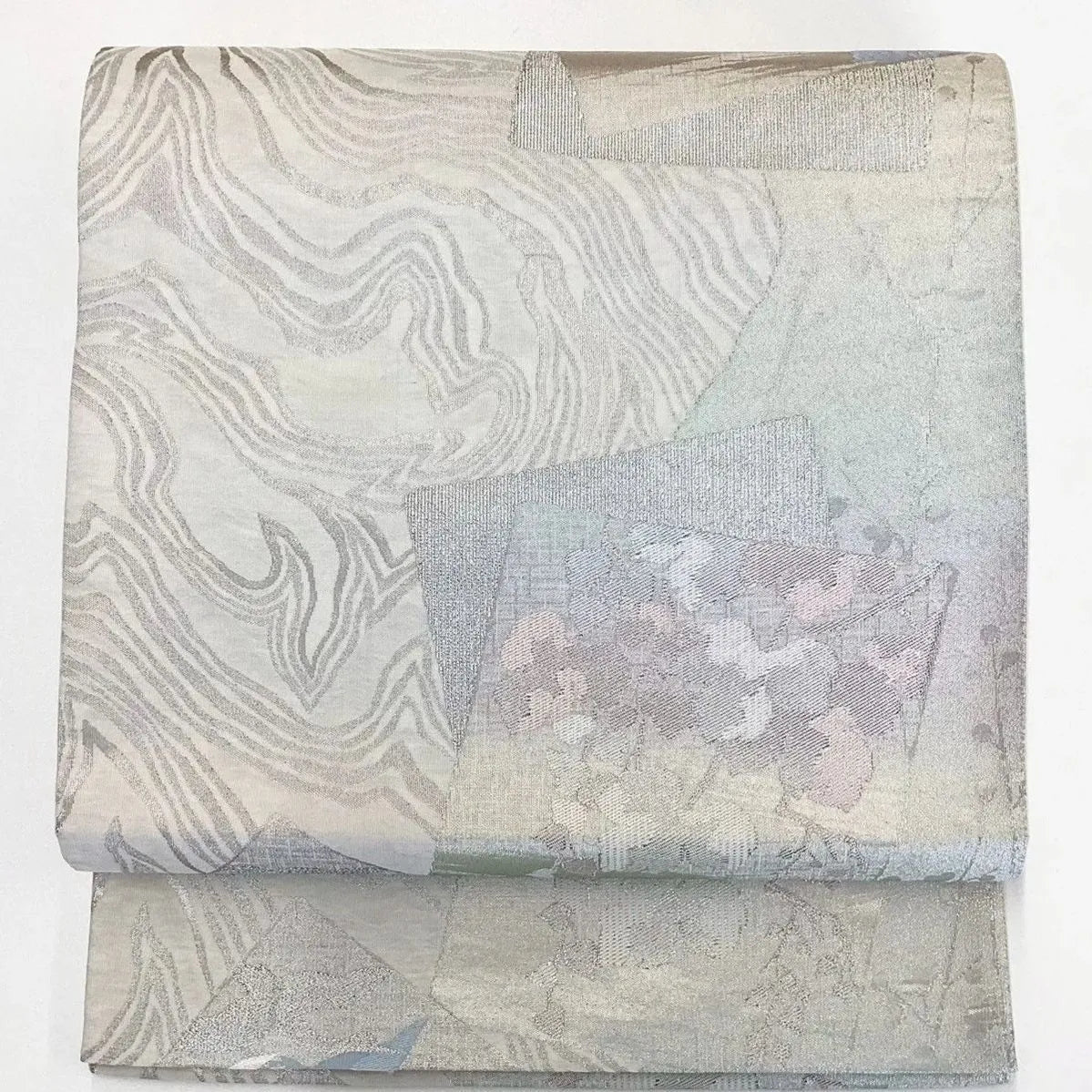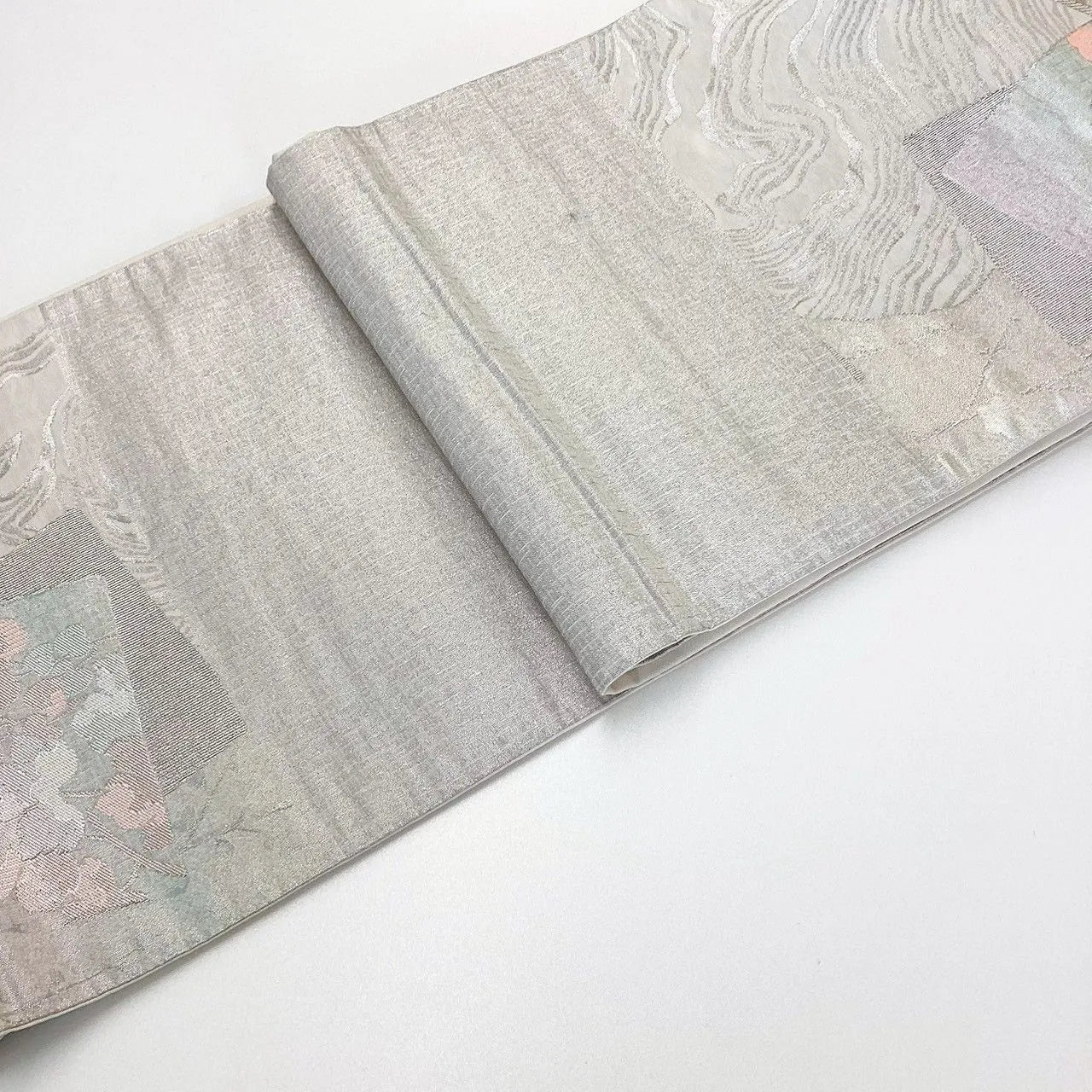 7232# Japanese Vintage Fukuro Obi Belt Kimono Fabric Silk Traditional Silver
