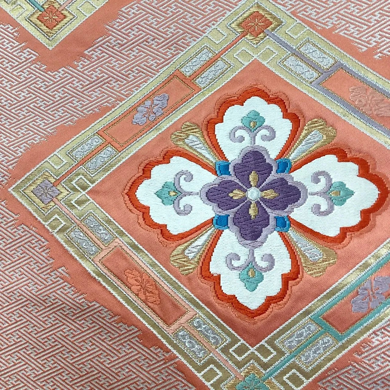 7243# Japanese Vintage Fukuro Obi Belt Kimono Fabric Silk Traditional Embroidery