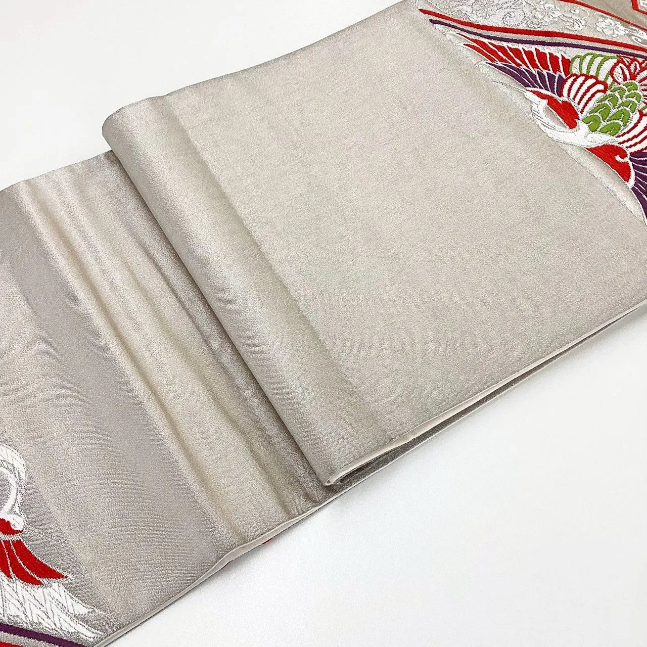 This is a bag obi featuring a phoenix pattern.