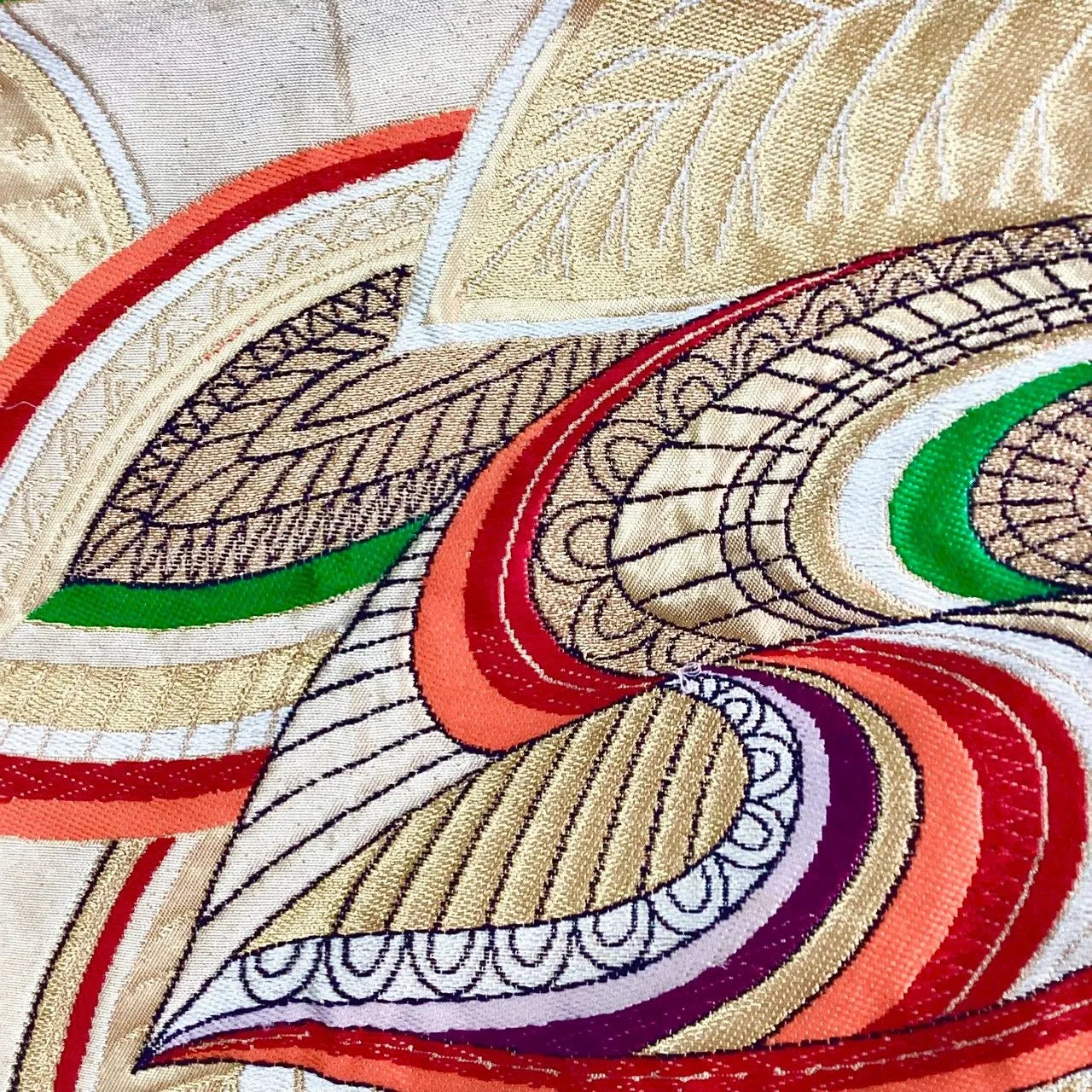 7259# Japanese Vintage Fukuro Obi Belt Kimono Fabric Silk Traditional Gold