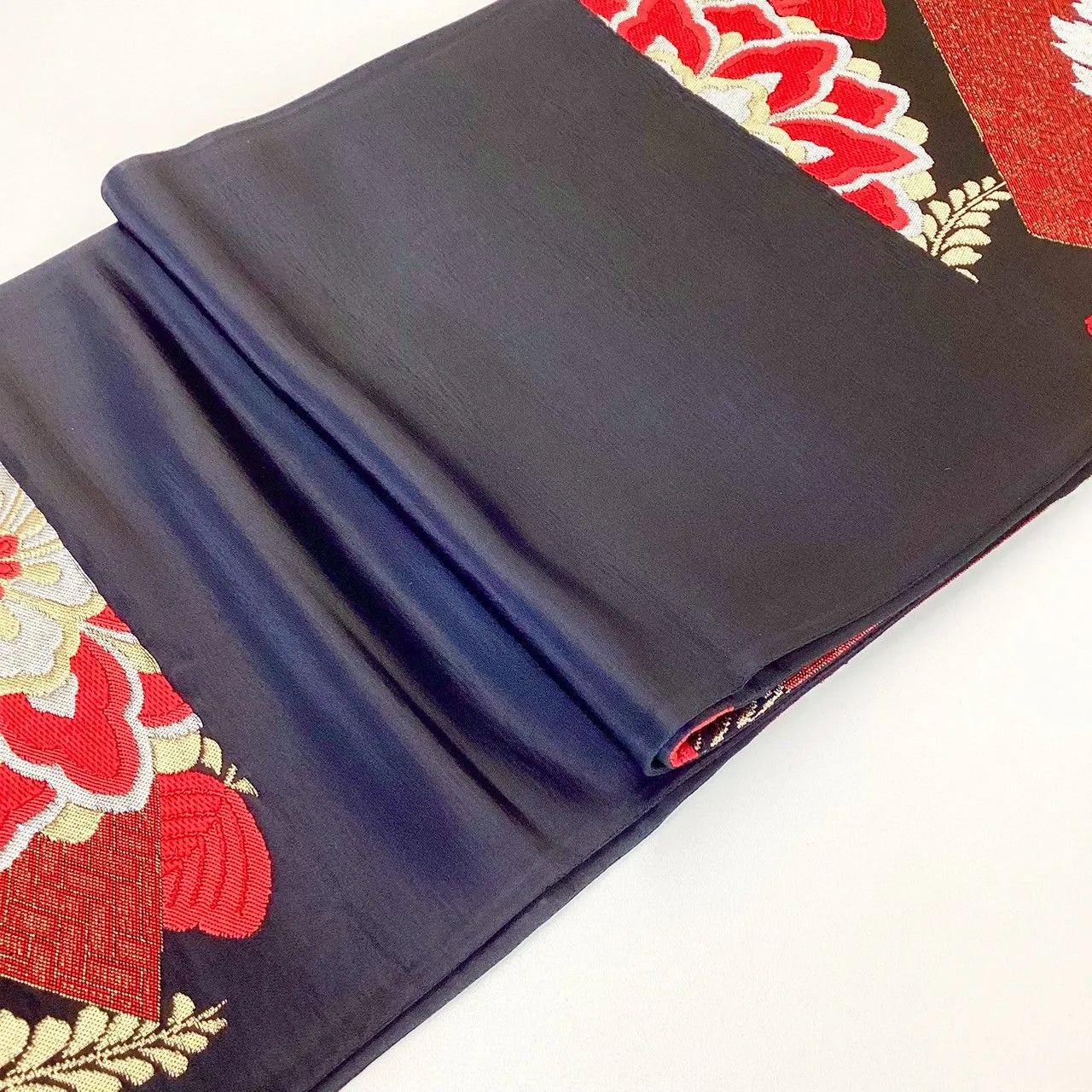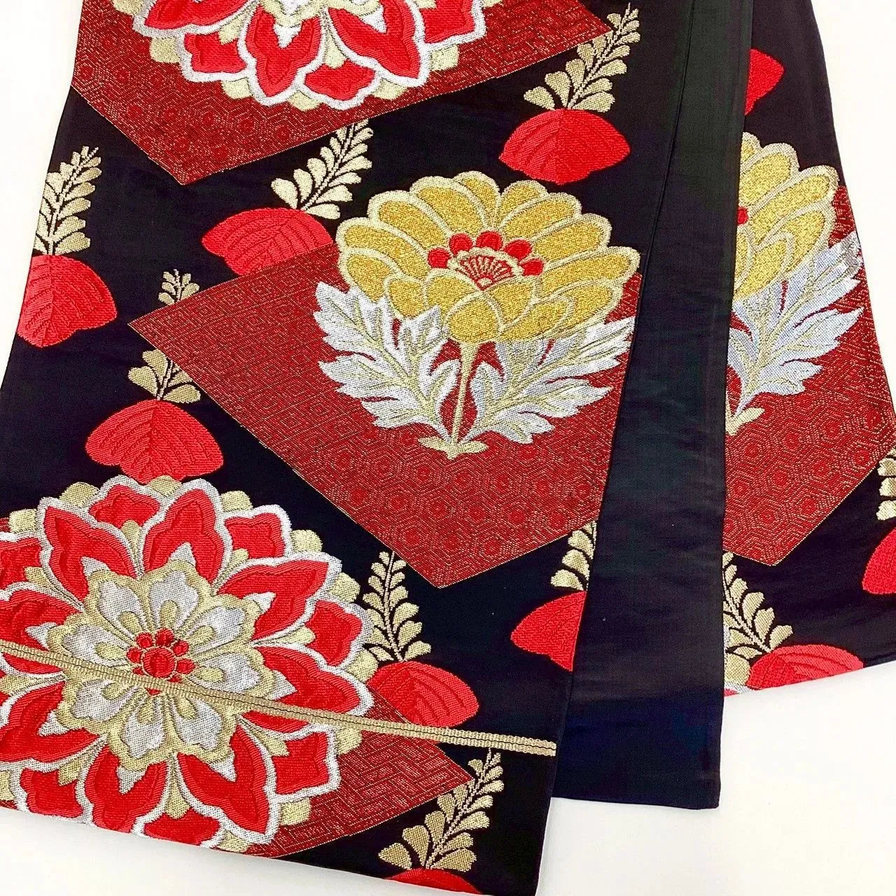 This is a bag obi featuring a floral pattern.