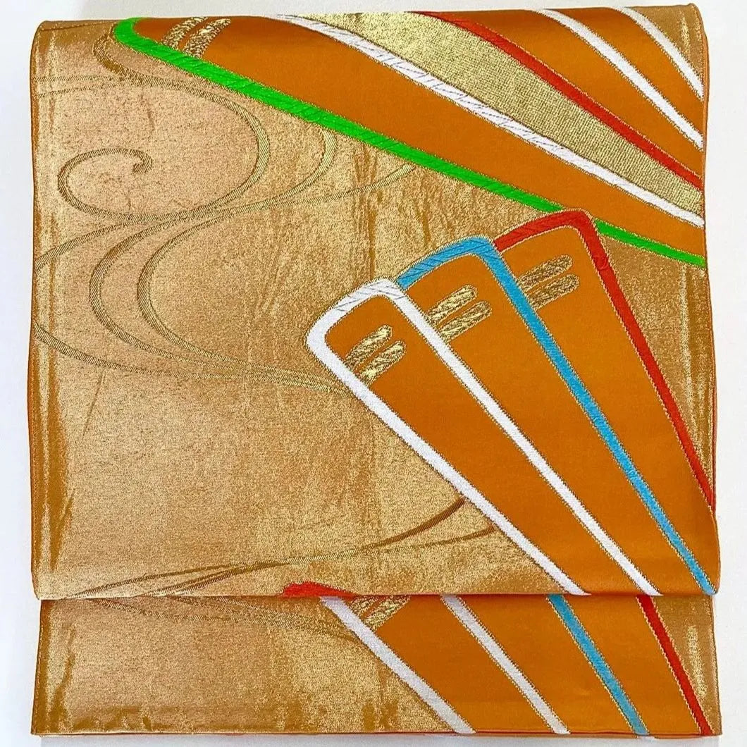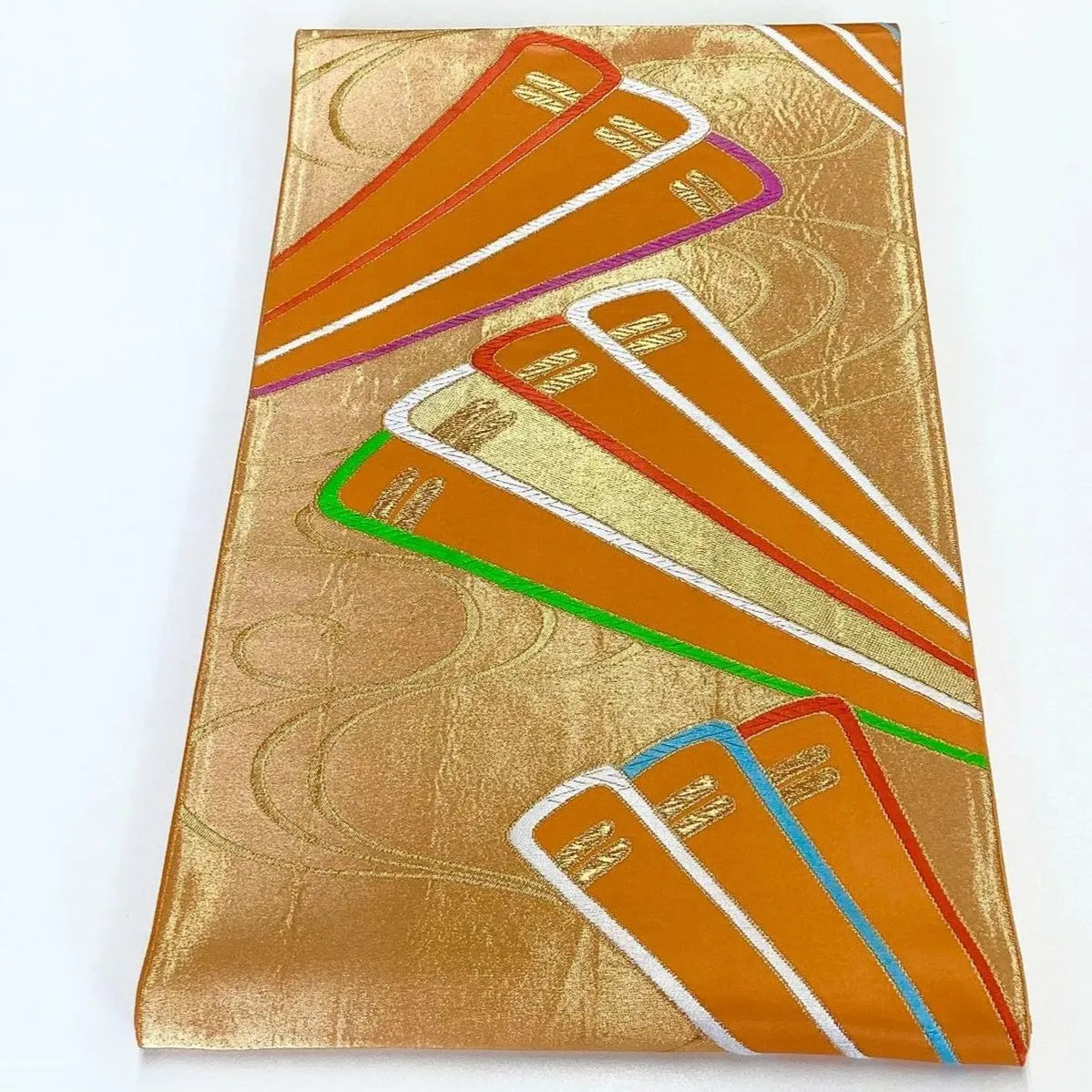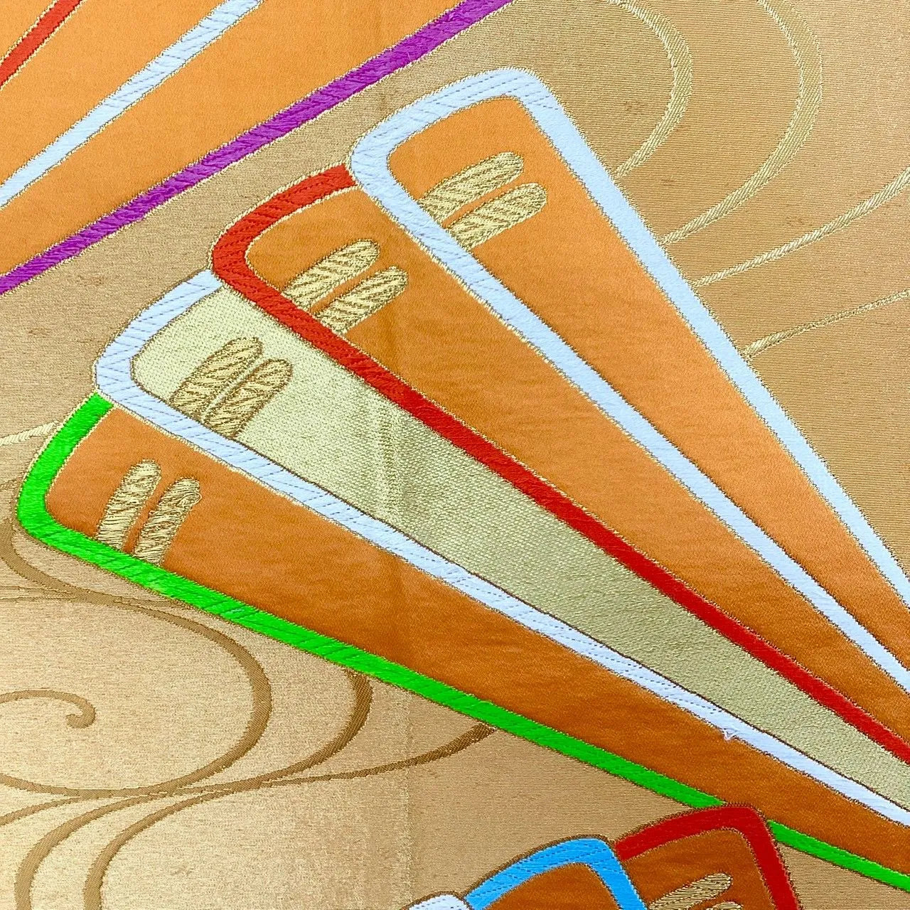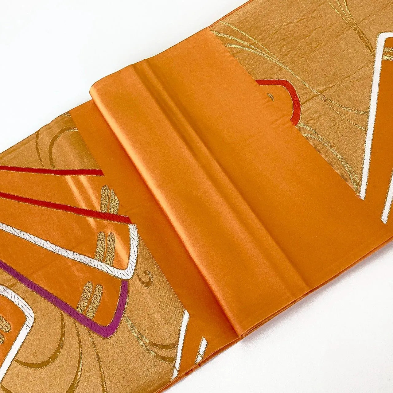 7279# Japanese Vintage Fukuro Obi Belt Kimono Fabric Silk Traditional Embroidery