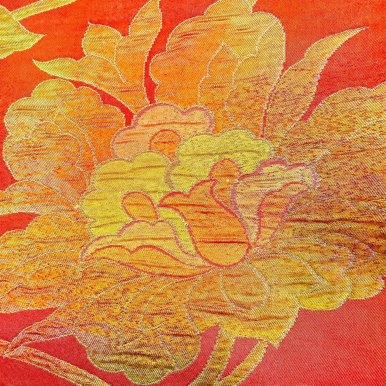 This is a Nishijin-ori bag obi featuring a floral arabesque pattern.